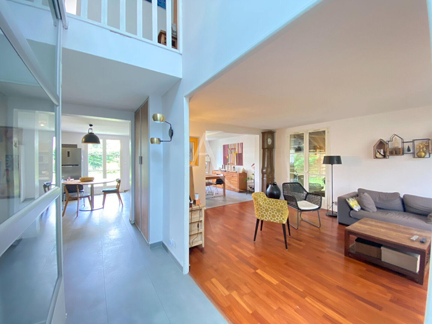 Dès l'entrée, la lumière naturelle s'invite généreusement dans un vaste hall qui mène à une agréable pièce de vie, chaleureuse et conviviale. Le salon-séjour, parfaitement agencé, s'ouvre sur une cuisine moderne, entièrement aménagée et équipée, avec îlot central, idéale pour partager des moments en famille ou entre amis. Une chambre au rez-de-chaussée, une buanderie et des toilettes complètent ce niveau, permettant une vraie vie de plain-pied.