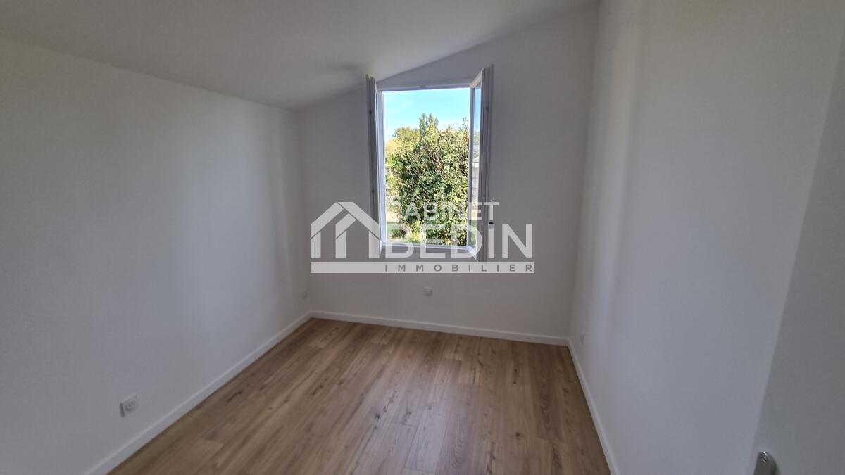 PESSAC. Maison individuelle (non mitoyenne) de plain pied entièrement refaite à neuf donnant sur un jardin d'environ 160 m² composée d'un séjour avec cuisine ouverte, de 2 chambres et d'une salle d'eau (WC séparés). Les commerces et écoles sont à proximité.