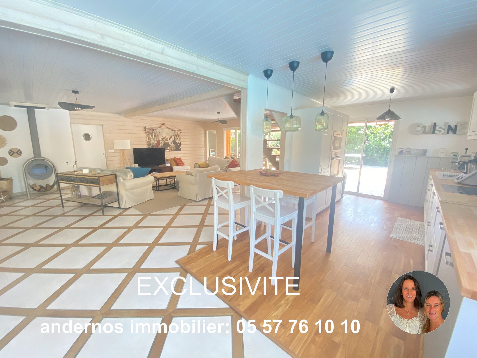 En EXCLUSIVITE à Andernos, coup de coeur pour cette maison unique, alliant charme, confort et beaux volumes. Accueillante par son généreux salon avec cuisine semi ouverte équipée donnant sur la terrasse couverte, cellier buanderie, 4 chambres, salle de bains avec douche , salle d'eau, 2 wc. L'extérieur se décline en un très joli jardin paysagé et parfaitement entretenu avec piscine et dépendance type T2 aménagée. Environnement calme et à l'abri des regards. Nouveauté ANDERNOS IMMOBILIER.