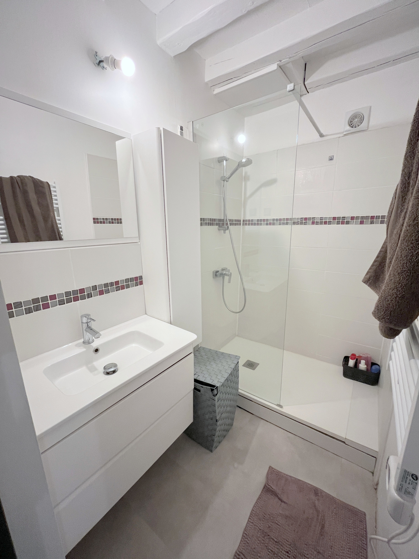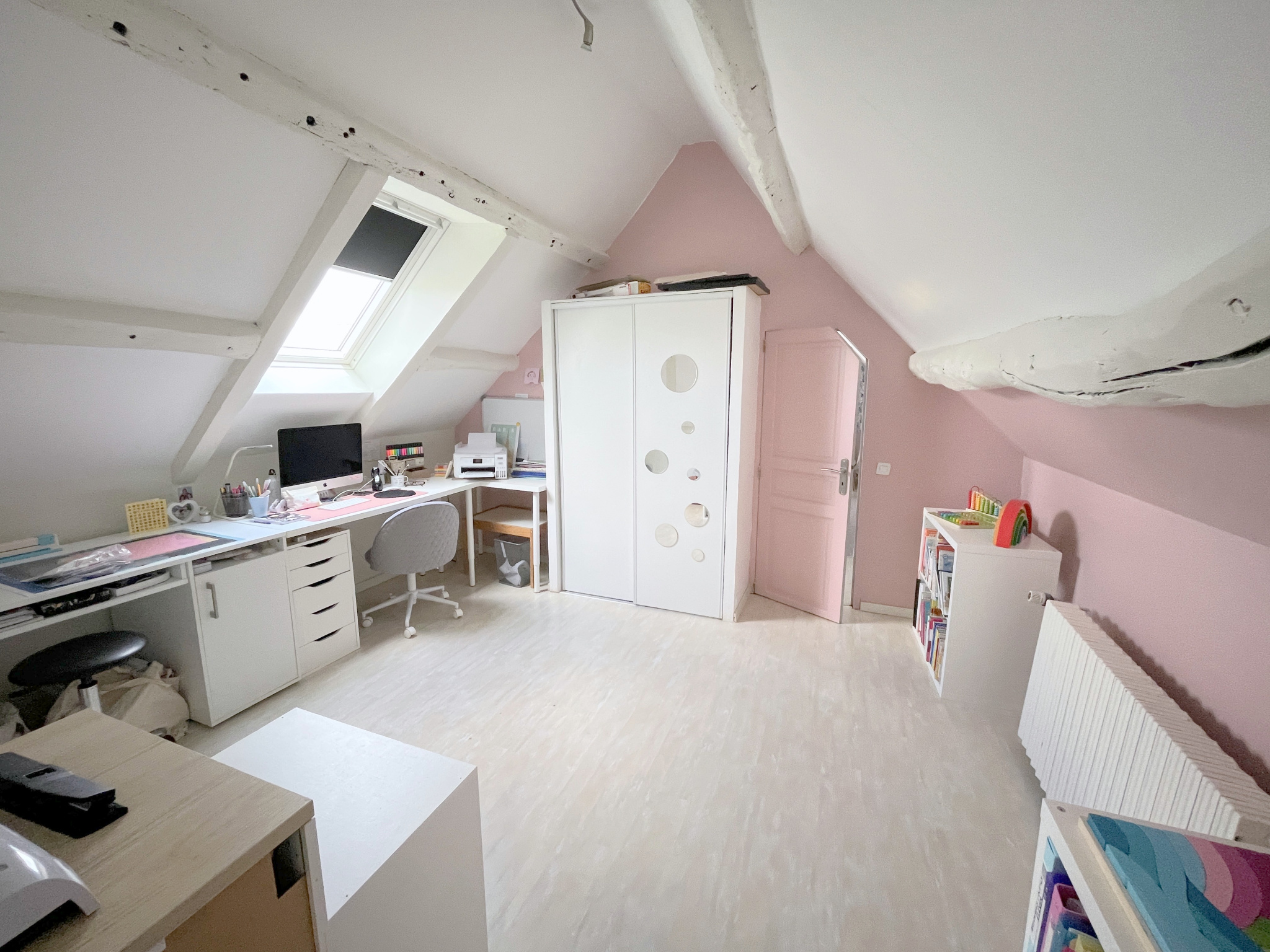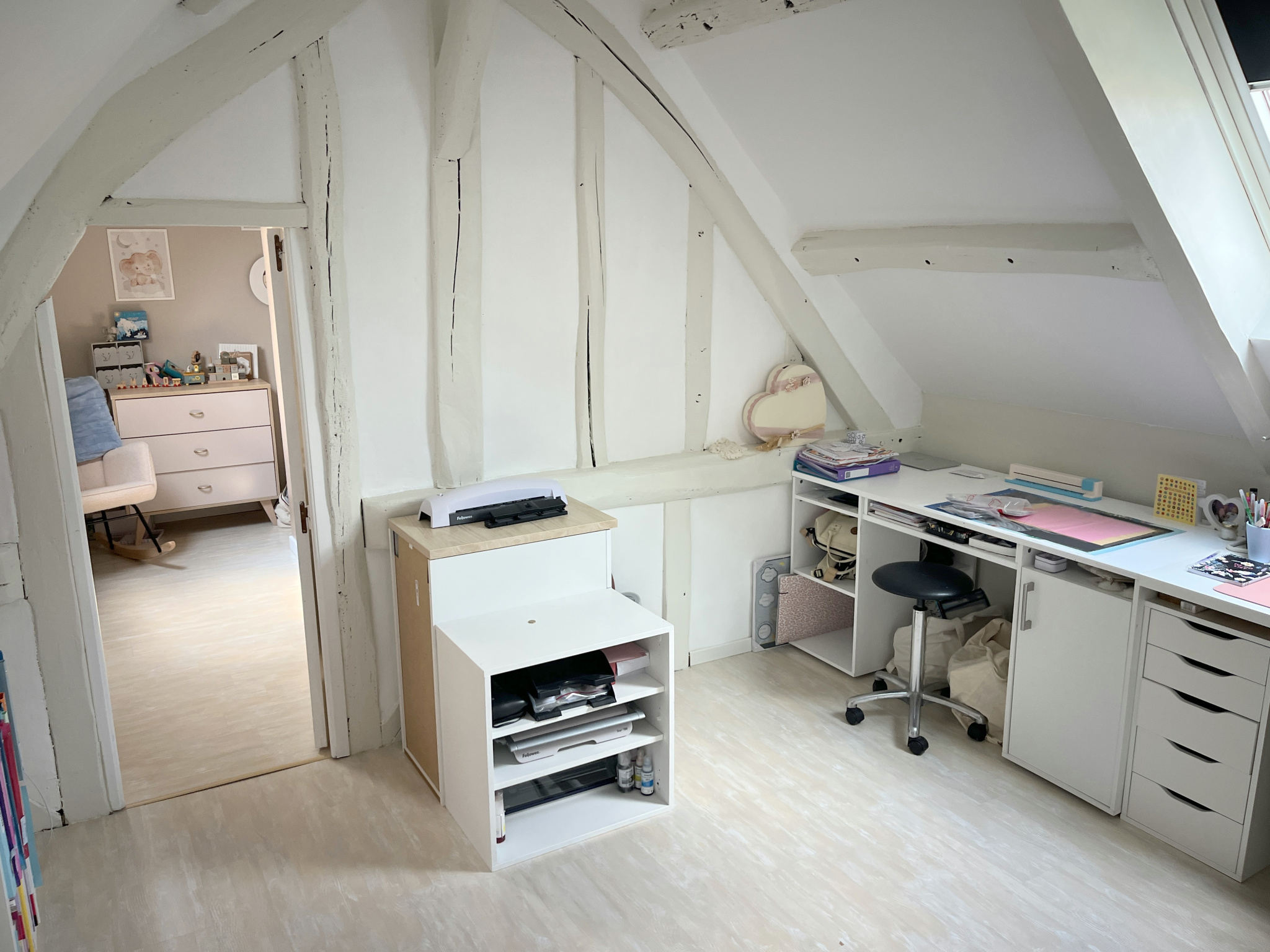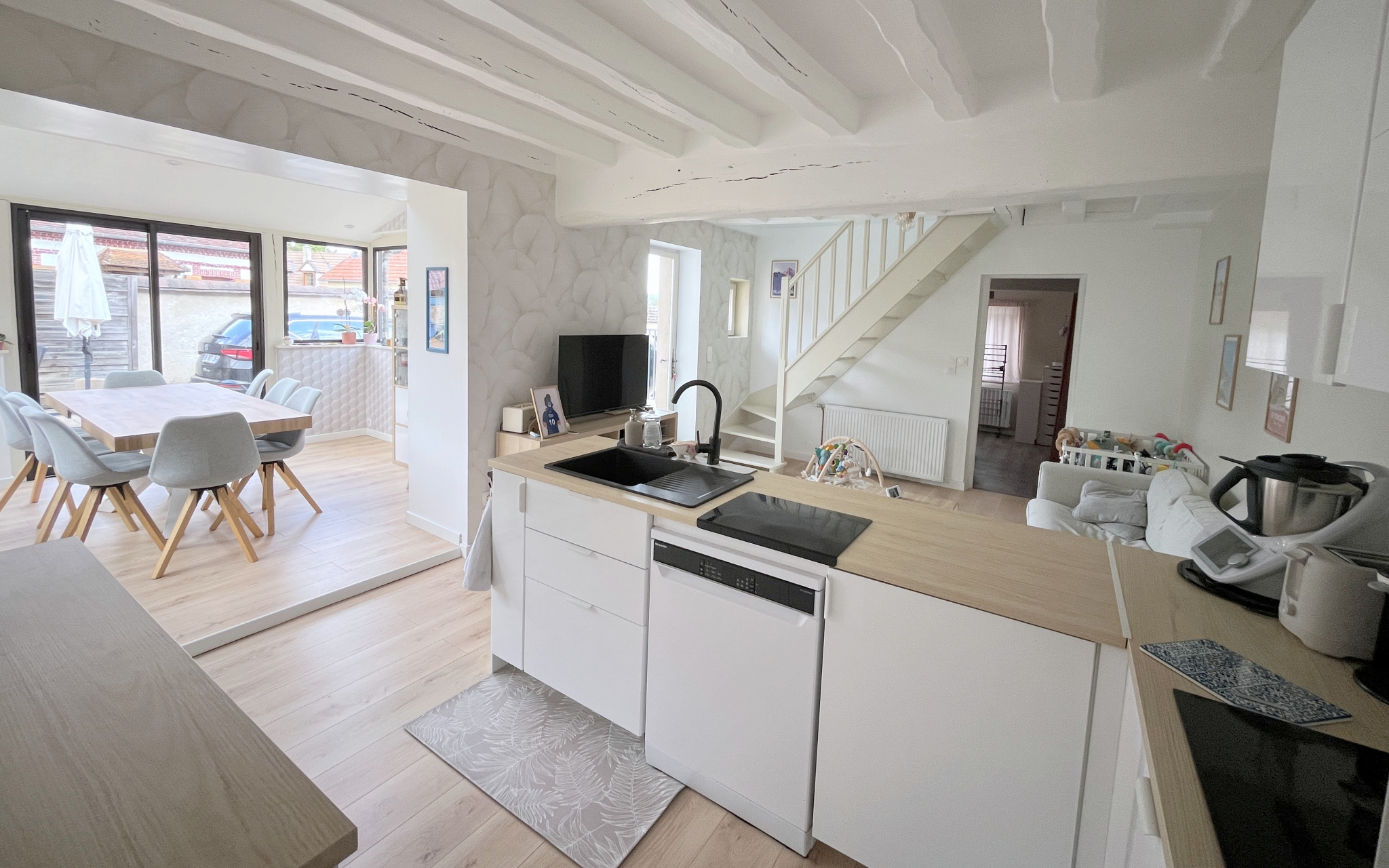 PROCHE COMMODITÉS, Charmante maison en parfait état comprenant entrée sur séjour, cuisine récente aménagée et équipée ouverte, Salle à manger, cellier, Salle de bains avec wc, Chambre avec salle de douche privative ; A l'étage : 2 chambres et 1 bureau.