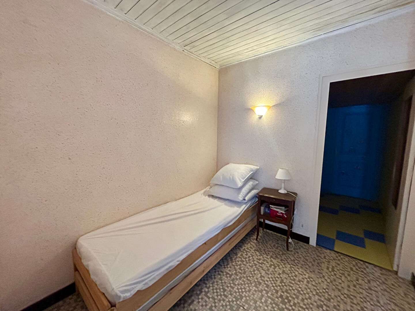 Elle se compose d'un salon/salle à manger lumineux, d'une cuisine aménagée, de deux chambres, dont une avec accès indépendant depuis l'extérieur, ainsi que de deux bureaux pouvant servir de chambres d'appoint.