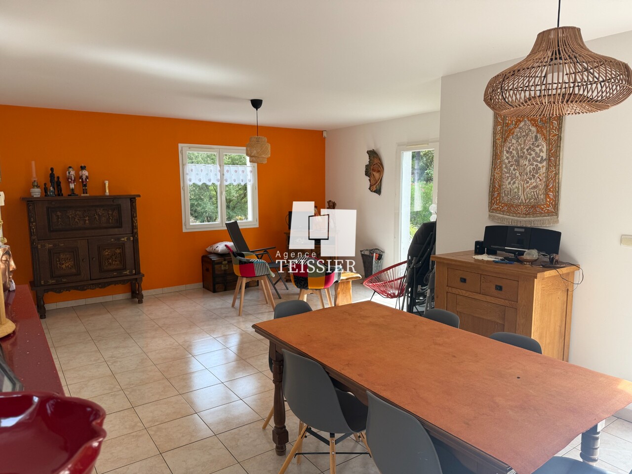 En parfait état, elle se compose d'une pièce à vivre avec cuisine de 46 m², trois chambres 12/10 et 10 m², d'une salle d'eau et d'un garage.