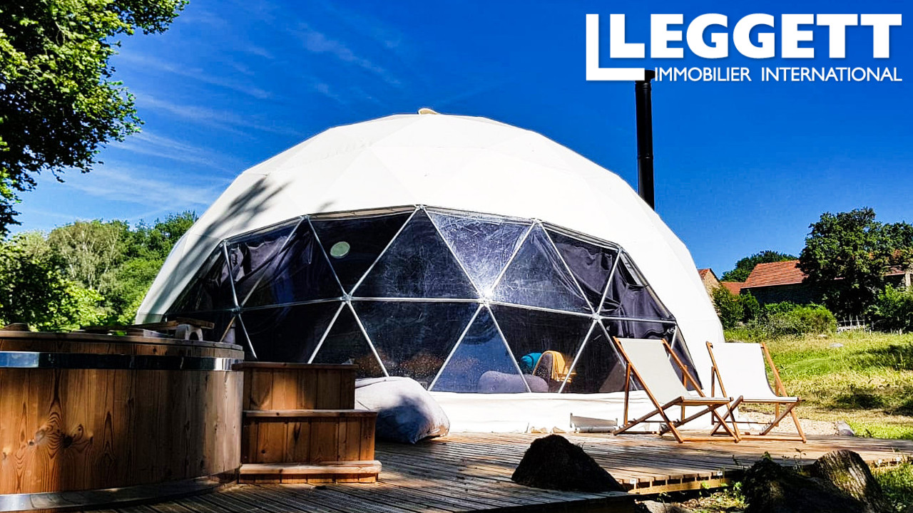 A12822 - Ce magnifique complexe est à voir absolument, vous ne serez pas déçu d'une visite. L'établissement dispose de 2 dômes géodésiques, tous deux dotés de leur propre bain à remous au feu de bois . Il y a aussi une petite maison à rénover, les possibilités avec cette propriété sont infinies. Ceci se trouve sur un terrain de 26570m² de terrain et de bois.