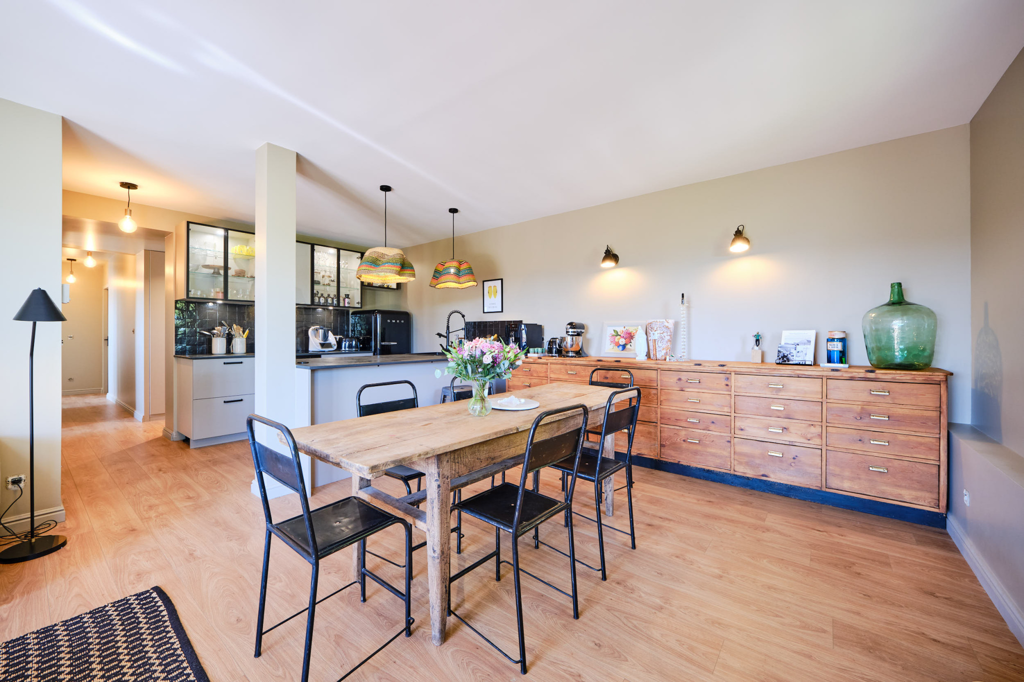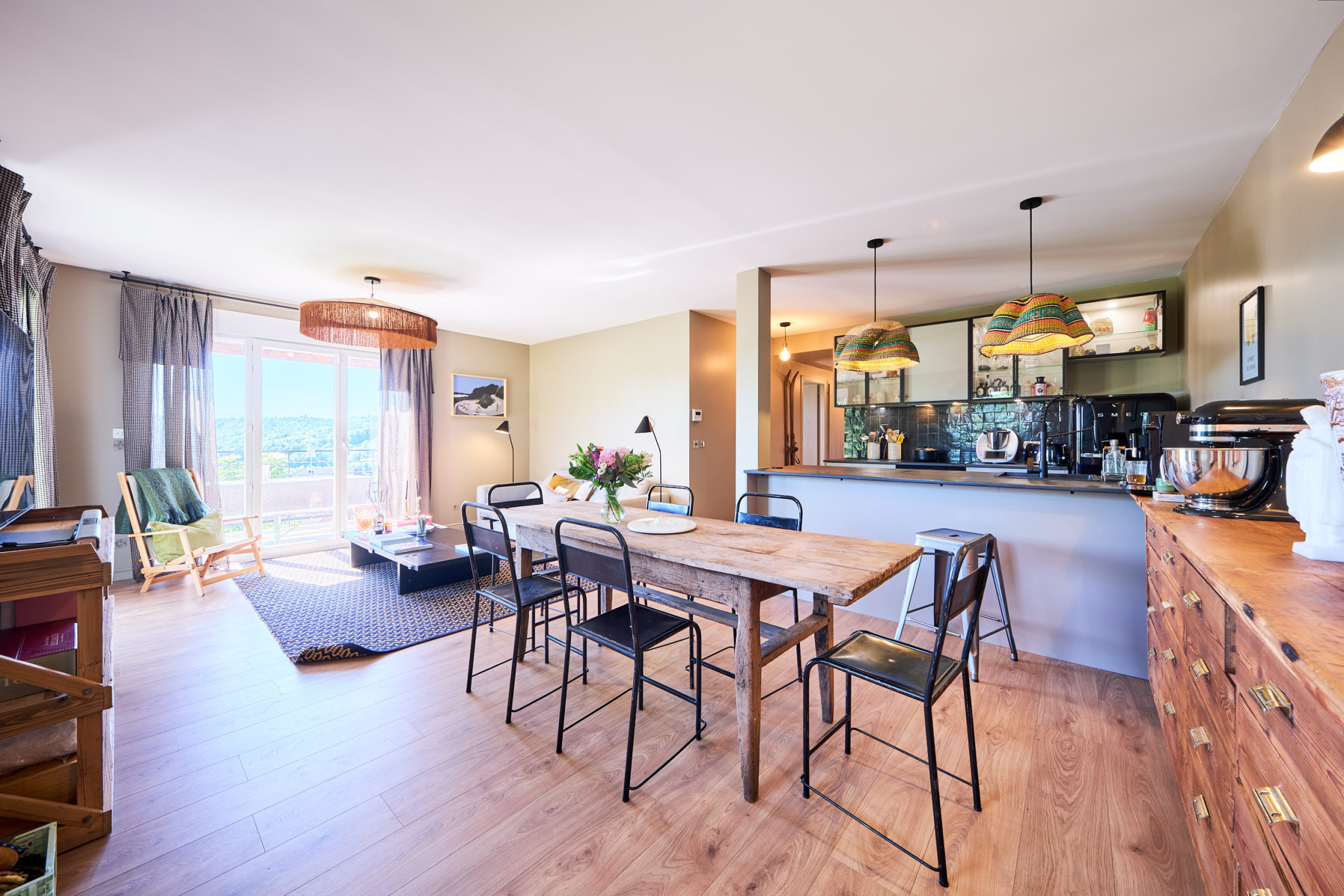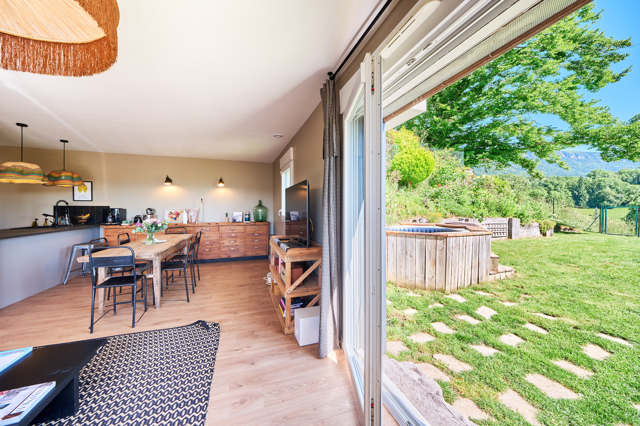 Au sein d'une copropriété récente de 2015, bien entretenue, avec de faibles charges, ce T4 d'environ 80,86 m2, entièrement rénové avec goût, allie confort moderne et atmosphère chaleureuse. L'entrée avec rangements mène à une belle pièce de vie lumineuse, exposée sud-ouest, avec une cuisine ouverte sur mesure réalisée par un menuisier. Cet espace convivial s'ouvre sur une grande terrasse de 20 m2, idéale pour vos moments de détente, et sur un jardin privatif de 130 m2, sans vis-à-vis, offrant une vue dominante sur les collines, dans un calme absolu. L'espace nuit se compose de trois chambres : Une avec bureau intégré, une avec dressing aménagé, et une troisième. Une salle d'eau contemporaine avec douche à l'italienne, ainsi que des WC séparés, complètent le bien. En annexe, vous bénéficiez de :