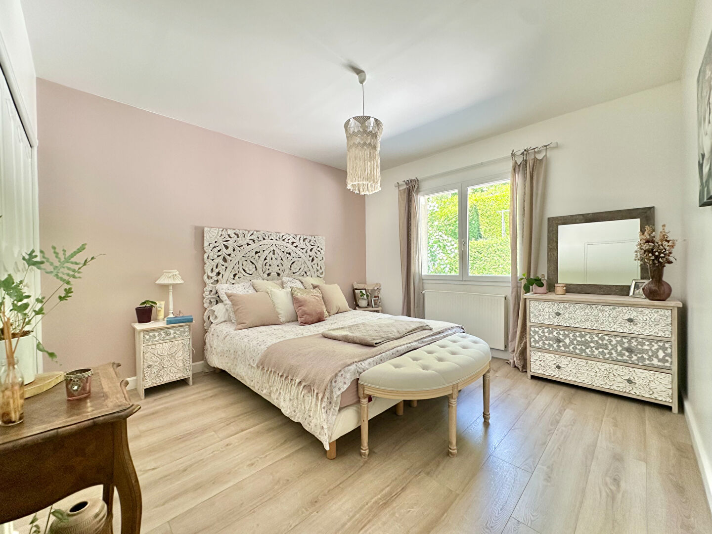Côté nuit, vous trouverez cinq chambres confortables, parfaites pour accueillir une grande famille, des amis ou aménager un bureau pour le télétravail, ainsi qu'une salle de bains avec douche et baignoire puis une salle d'eau avec WC. Le sous-sol total vient compléter ce bien avec de nombreuses possibilités d'aménagement : salle de jeux, atelier, espace de stockage ou encore salle de sport.