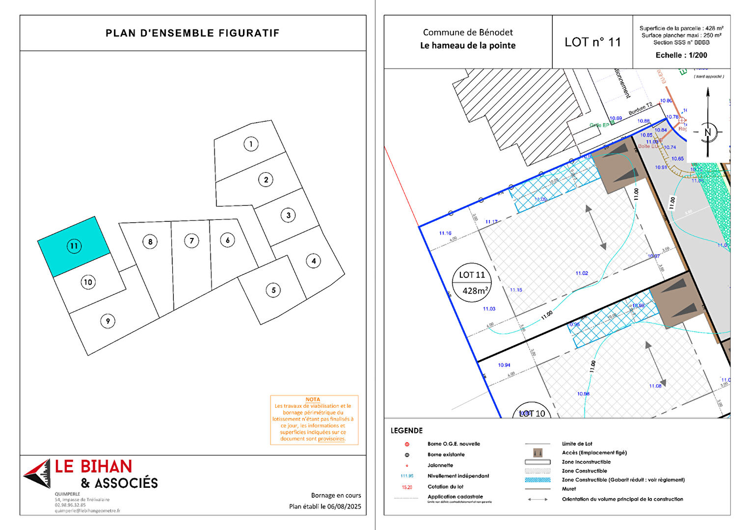 NOUVEAU - A BENODET , situé en impasse dans un quartier résidentiel de standing, le lotissement "Le Hameau De La Pointe" est composé de 11 lots libres de constructeur, de 379 m² à 662 m² (surface moyenne : 482 m²). Lot entièrement viabilisé, aménagement paysager soigné.