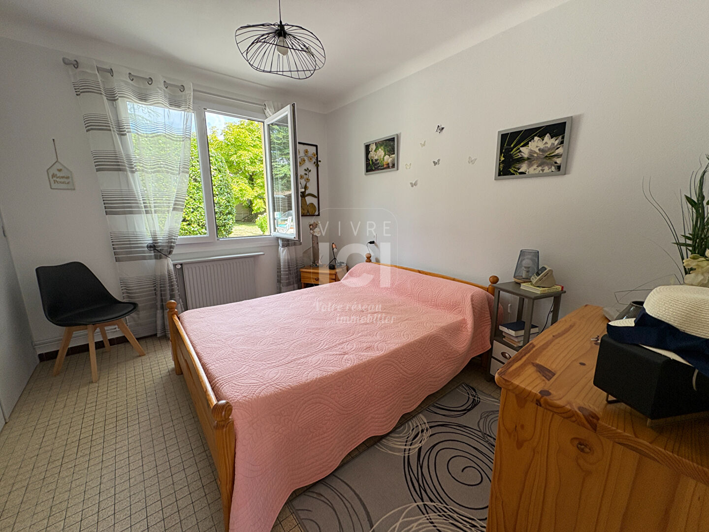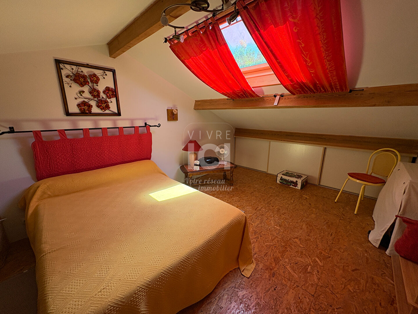 A l'étage, un palier distribue deux chambres sous combles avec placards de rangements. Terrain d'environ 1400 m² avec piscine en bois couverte et démontable, abri de jardin et puits à usage d'arrosage.