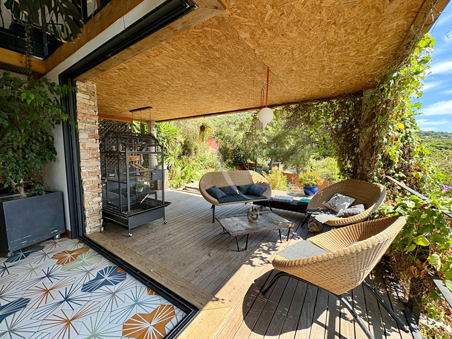 Pensée comme un véritable refuge, elle offre des espaces de vie fluides et chaleureux où chaque détail a été choisi pour créer une atmosphère à la fois conviviale et raffinée. La cuisine semi-ouverte s'intègre naturellement au séjour, prolongé par plusieurs terrasses propices aux instants partagés et à la contemplation.