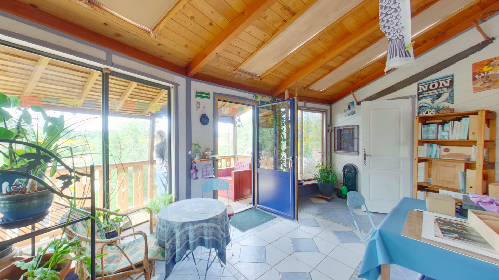 Avec ses 120 m² habitables, elle offre une grande pièce de vie baignée de lumière, ouverte sur une cuisine conviviale et surmontée d'une mezzanine ouverte. Un vaste espace bureau complète la partie pièces de vie, ainsi qu'un second petit bureau pour télétravailler au calme. Vous profiterez également d'un coin serre/véranda pour prolonger vos moments de détente toute l'année.