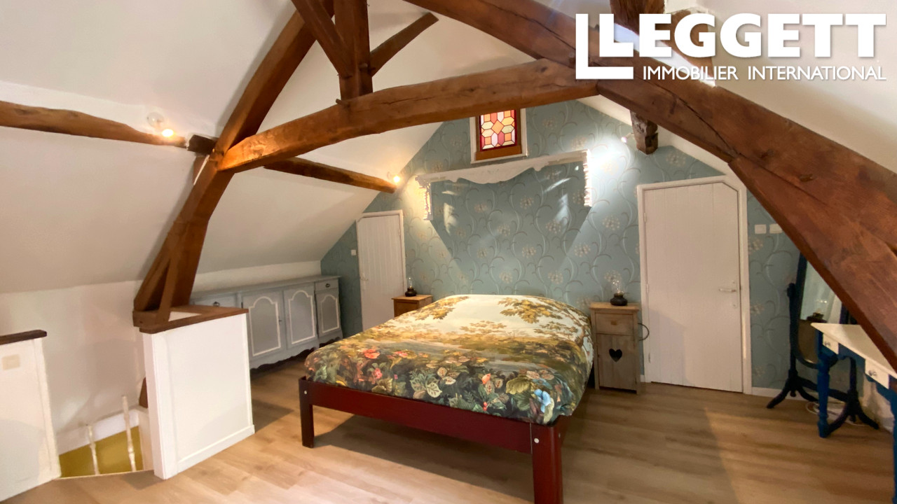 Dans un très grand jardin arboré, cette propriété de 4 chambres (dont une servant de bureau) dispose de deux vastes espaces de vie, tous deux équipés de poêles à bois, parfaits pour les réunions de famille et les réceptions. Le salon/salle à manger de près de 70 m² bénéficie d'une magnifique mezzanine ouverte avec des plafonds voûtés de style cathédrale au-dessus des fenêtres de grange à double exposition.