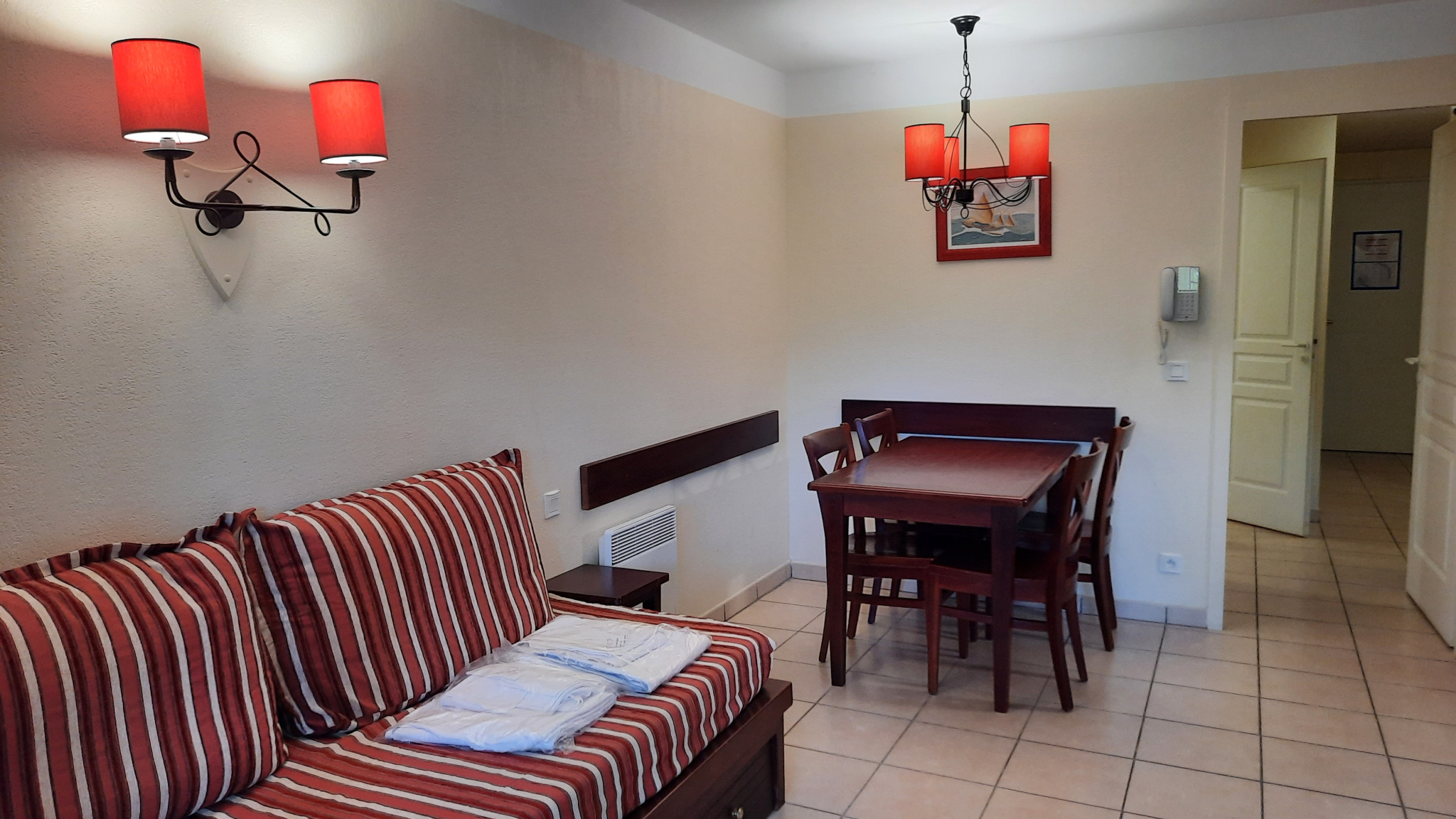 Découvrez ce charmant appartement T2 situé au rez-de-chaussée de la résidence Pierre & Vacances 'Domaine de Gascogne', un véritable havre de paix au coeur des Landes. Il offre un cadre paisible et verdoyant, en lisière de la forêt landaise.