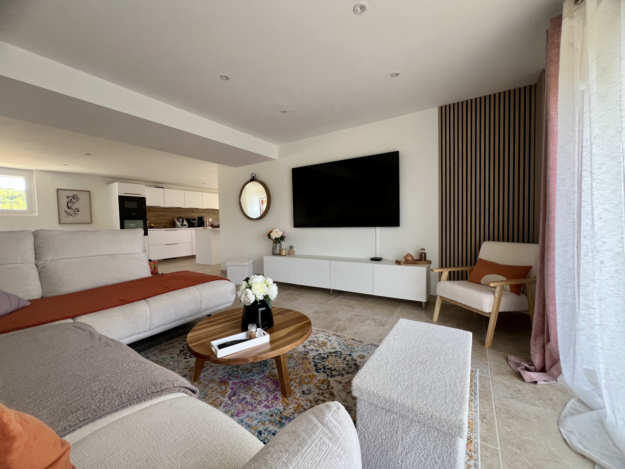 Au rez-de-chaussée, vous serez accueilli par une belle pièce de vie lumineuse comprenant un salon/séjour convivial, une cuisine ouverte et équipée, un cellier pratique et un toilette indépendant.