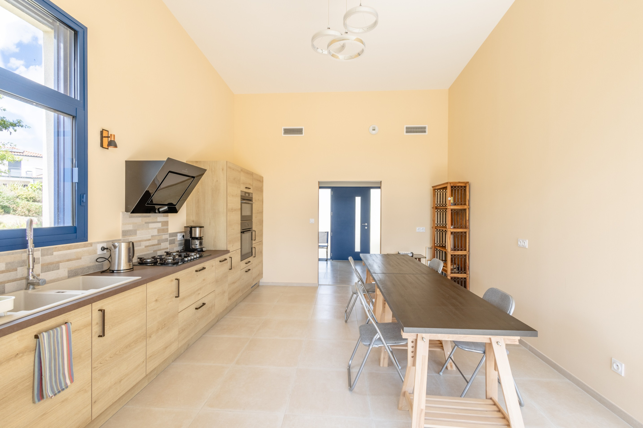 Dès l'entrée, un grand hall de 12 m2 vous accueille et ouvre sur de vastes espaces à l'atmosphère chaleureuse. La cuisine moderne de 25 m2, entièrement équipée, devient un véritable lieu de partage. Baignée de lumière naturelle, elle invite à la convivialité et à la créativité culinaire.