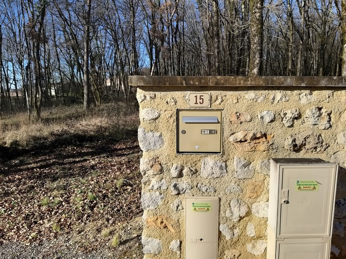 Dimensions de la parcelle: - Façade de l'entrée située au Sud = 19,23 ml (dont 4 ml prévus pour l'accès). - Coté opposé localisée au Nord, où se trouve la partie boisée = 19,73 ml - Longueur coté Ouest = 51,07 ml - Longueur coté Est = 42,04 ml.