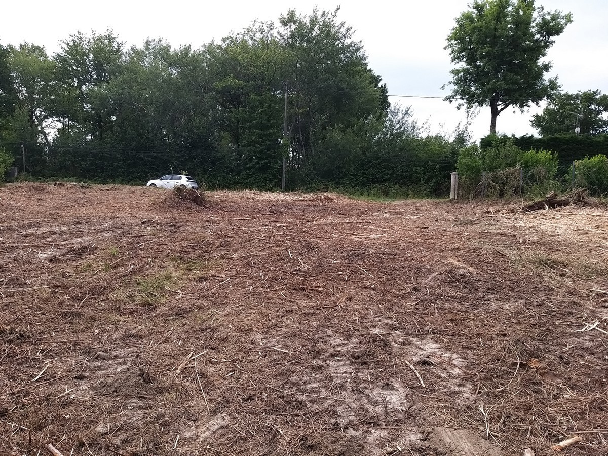 La partie constructible (1350 m2) qui est située à l'entrée a été défrichée.  Seul reste le déssouchage que le constructeur fera en préparant les fondations de votre future maison.