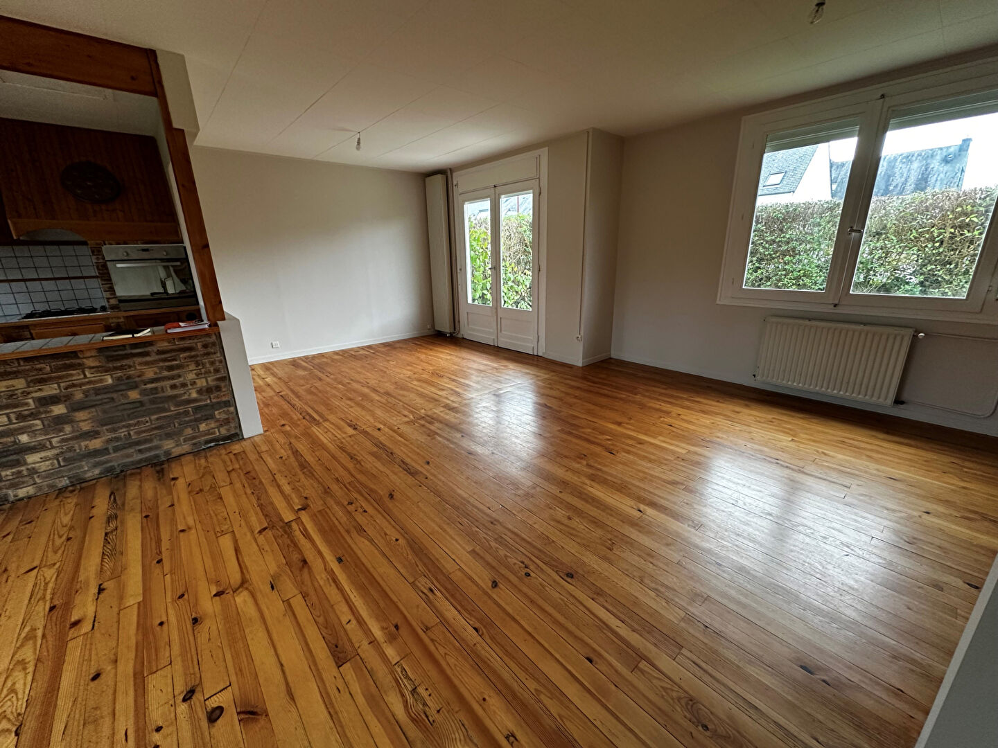 EXCLUSIVITE - Proche d'AURAY, entre VANNES et LORIENT une maison de plain-pied située dans le bourg de Sainte Anne d'Auray, mitoyenne par le garage, composée d'une entrée, un double séjour avec cuisine aménagée, deux chambres, une salle d'eau, un WC et une belle terrasse.