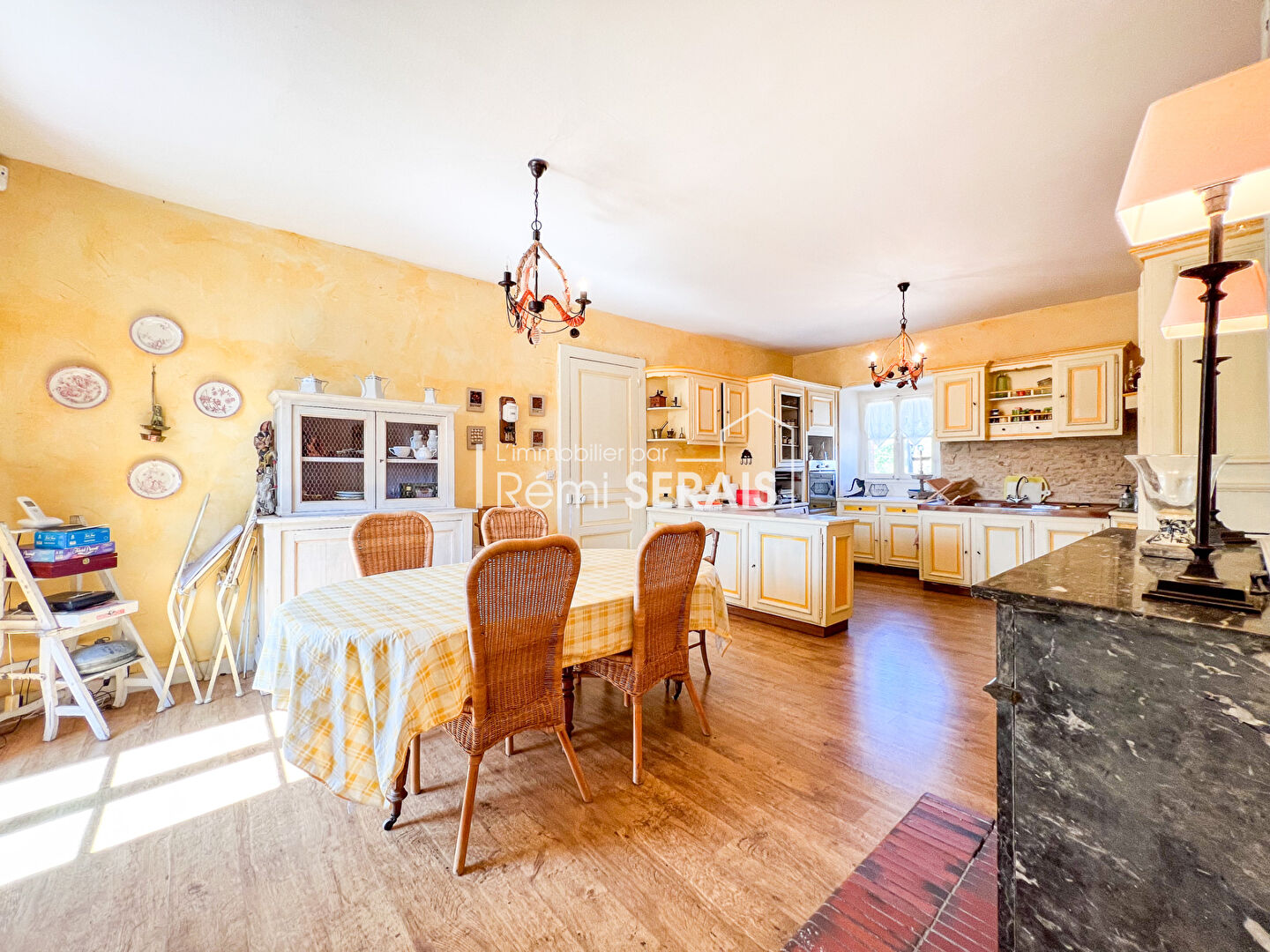 Dès l'entrée vous serez séduits par son vaste séjour lumineux d'environ 50 m², avec mur en pierres, sublimé par de magnifiques poutres apparentes et un bel escalier en bois qui apportent caractère et chaleur.