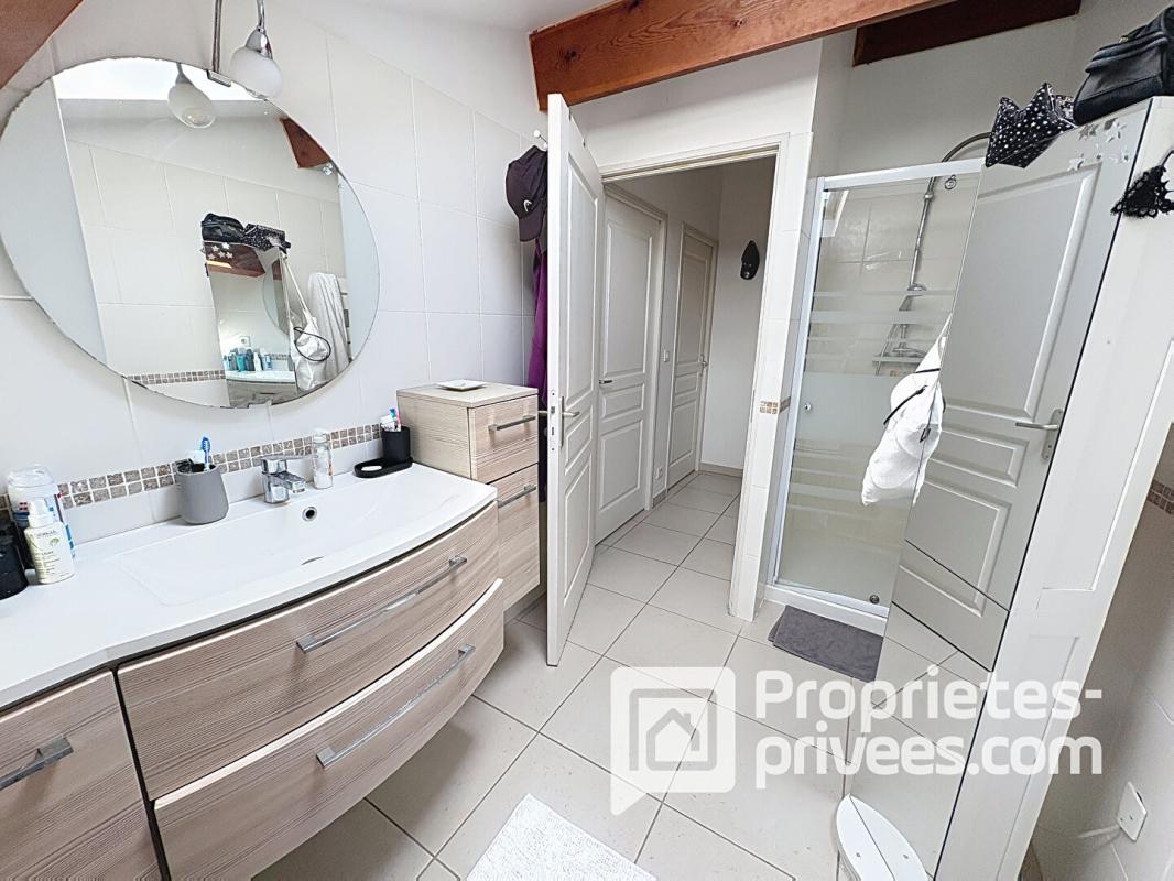 Au premier étage, vous trouverez deux belles chambres sous les combles mais avec une très belle hauteur, une deuxième salle d'eau.