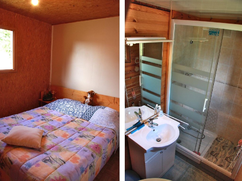 Un petit chalet bois de 34m² habitables et une dépendance d'environ 13m² sur un terrain de loisirs de 602m². Vous avez à votre disposition : une pièce de vie, une cuisine indépendante, une chambre, une salle d'eau et WC.