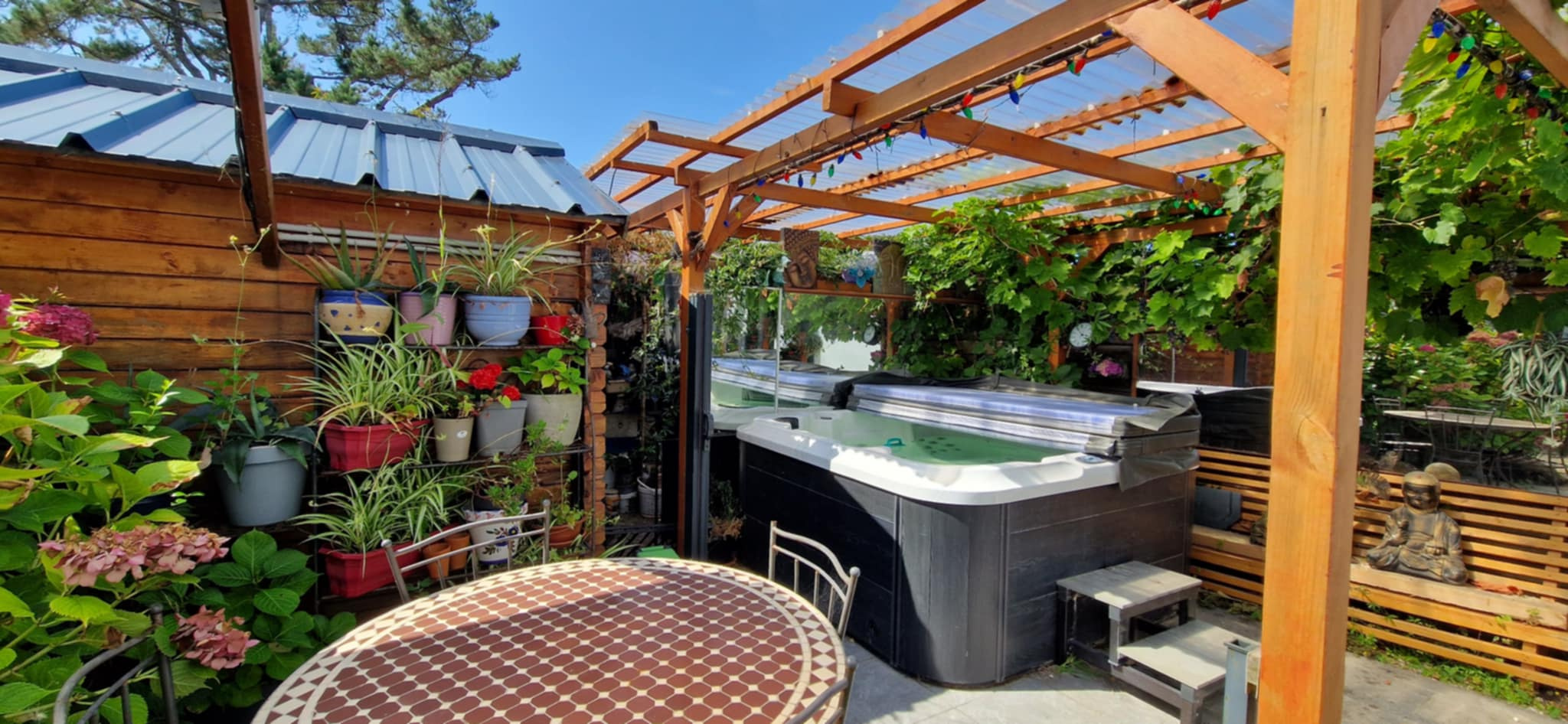 Retour en rez-de-chaussée avec 1 grande chambre indépendante de 22m2 avec salle d'eau et wc, sa terrasse et son petit préau avec coin kitchenette spécialement aménagé pour recevoir des hôtes. Seconde chambre de 14m2 avec salle d'eau et wc et les mêmes aménagements que la précédente.