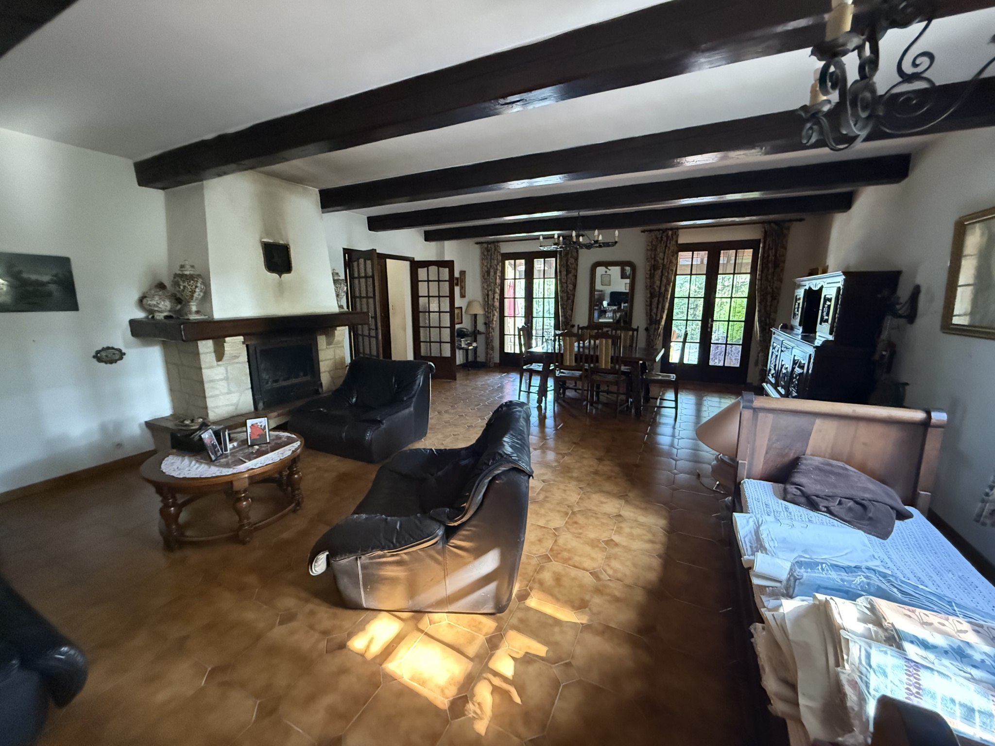 La maison se compose comme suit : un spacieux salon de 47 m2 avec cheminée insert, une cuisine séparée avec cellier, trois grandes chambres dont deux avec placards, une salle de bains et un WC indépendant.