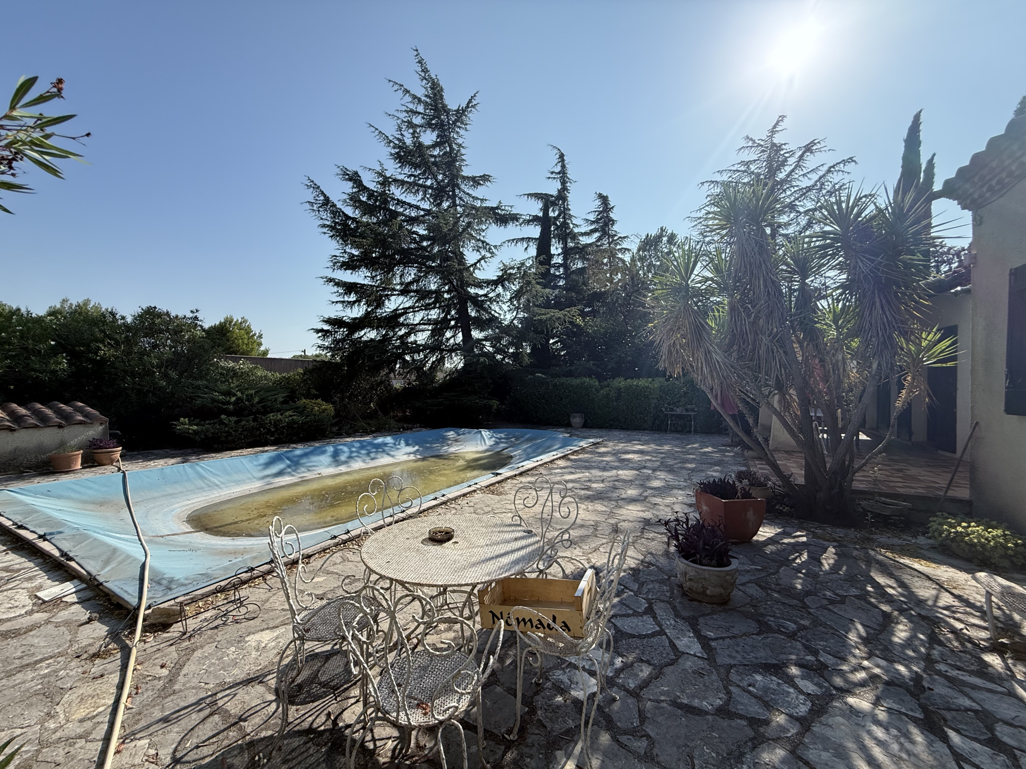 Vous apprécierez également le jardin joliment arboré de végétation méditerranéenne, sans vis-à-vis. La maison nécessite un rafraîchissement intérieur, mais elle est en très bon état général.