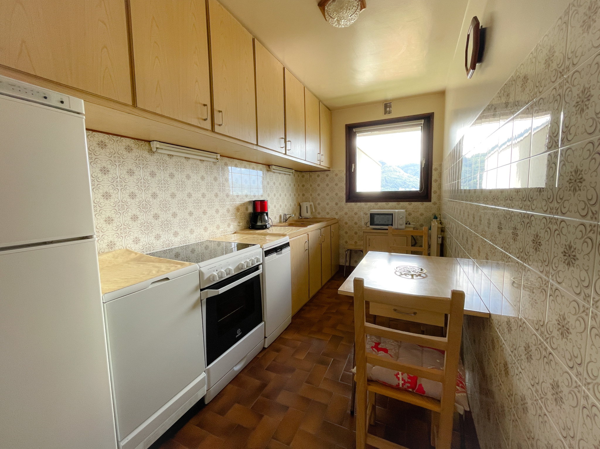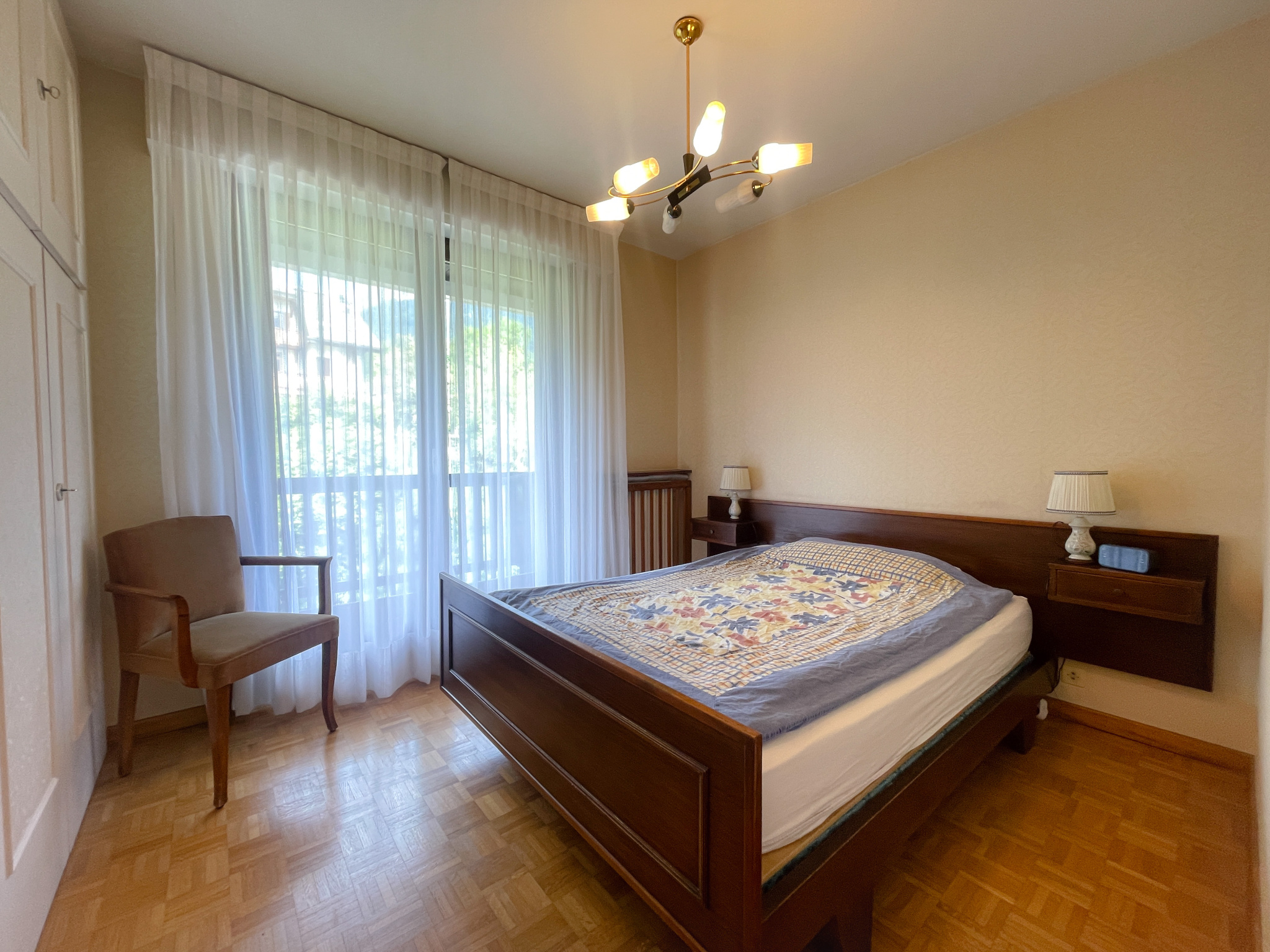Le logement est composé d'une entrée, un grand séjour de près de 23m2 donnant accès à un balcon avec vue panoramique sur le Mont-Blanc, une cuisine séparée, un dégagement avec placards, 2 chambres avec balcon côté Ouest, une salle d'eau entièrement refaite, et un wc séparé.