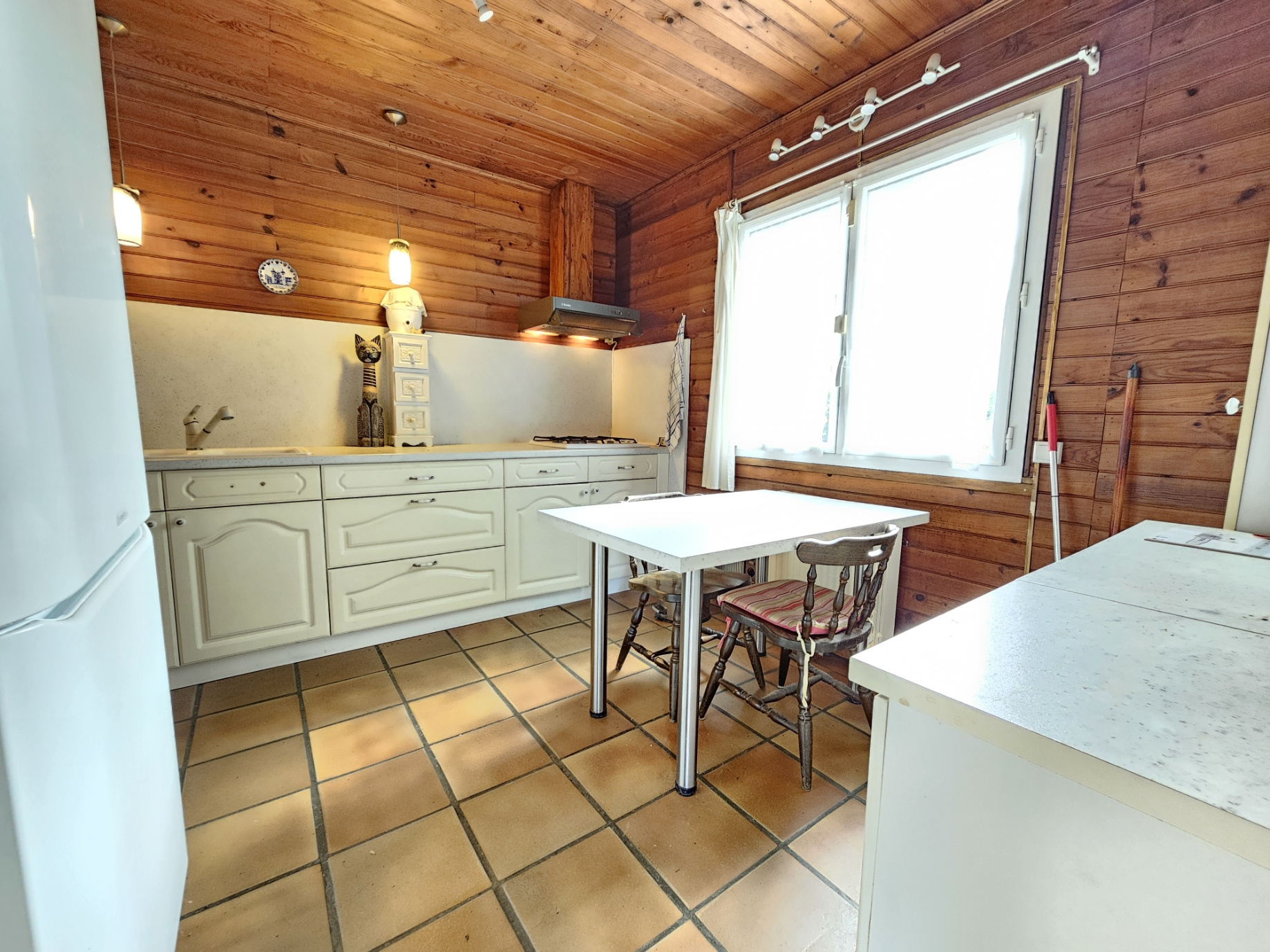 Située sur un terrain de 7293 m2, elle se compose d'une belle pièce à vivre lumineuse donnant accès à une grande terrasse, un salon/salle à manger avec cheminée, une chambre, une cuisine, une salle de bain ainsi qu'un WC séparé.