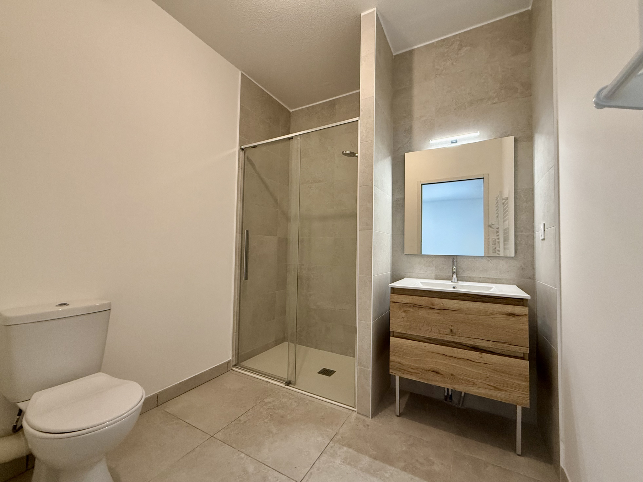 Une grande chambre avec placard ainsi qu'une salle de bains contemporaine composent le coin nuit.