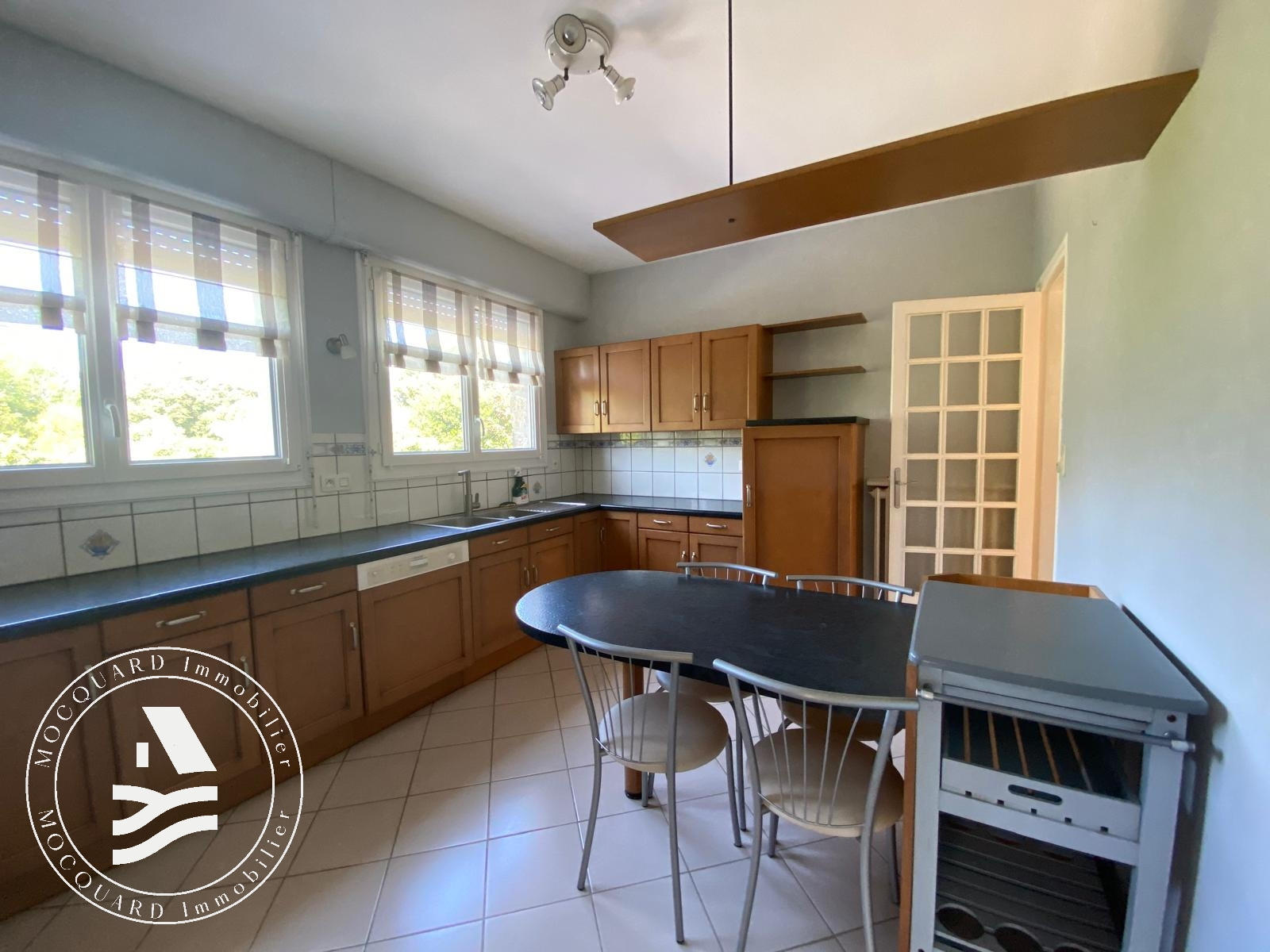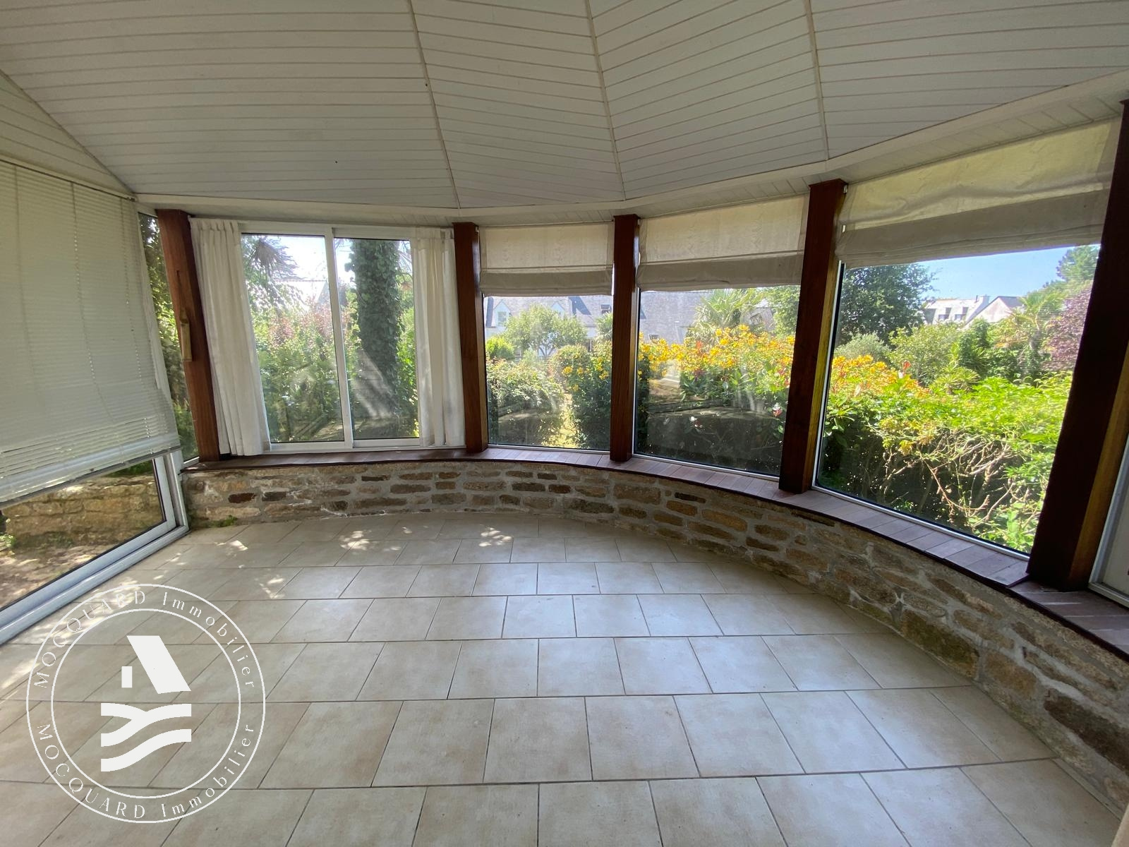 Édifiée sur un beau terrain arboré d'environ 1 500 m2, elle offre un cadre de vie paisible, à deux pas des commodités et des sentiers côtiers.