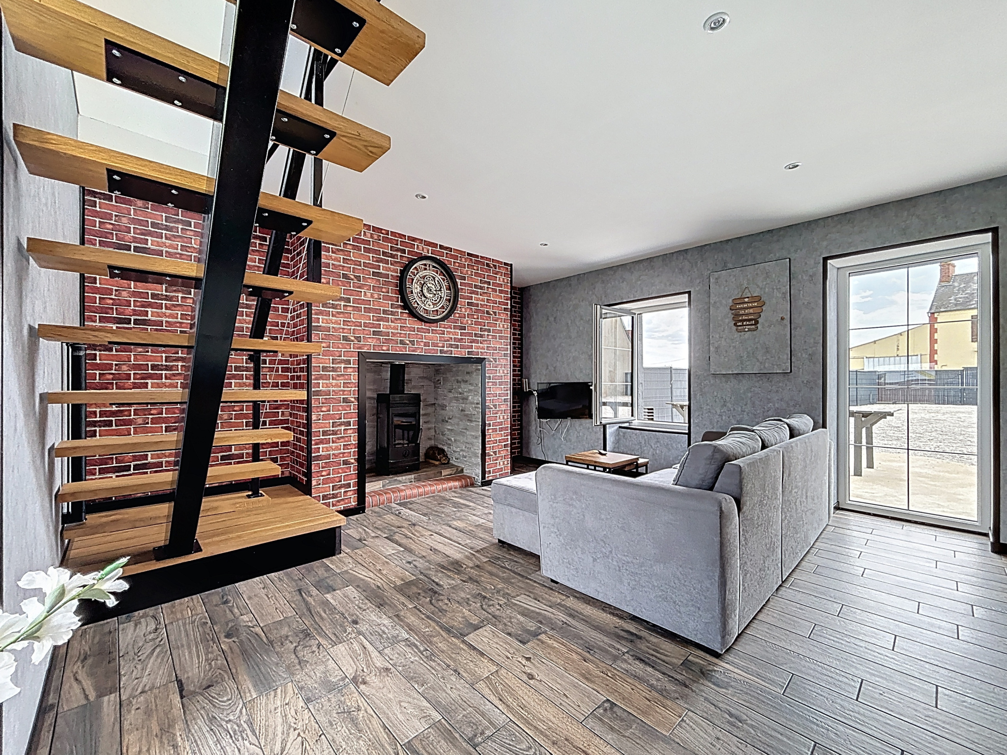 Au rez-de-chaussée, vous découvrirez une pièce de vie spacieuse et lumineuse avec une cuisine aménagée et équipée ouverte sur le séjour/salon, agrémenté d'un poêle à bois pour une ambiance chaleureuse. Une buanderie, un WC et une salle d'eau moderne avec douche à l'italienne.