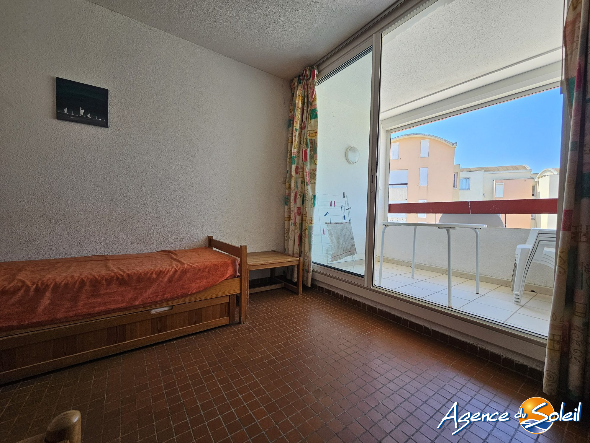 Plage du Grazel (zone piétonne) - Appartement T2 (petite chambre) avec balcon au deuxième étage. Exposition Ouest. Investissement idéal pour les vacances! Résidence calme avec parking privé.