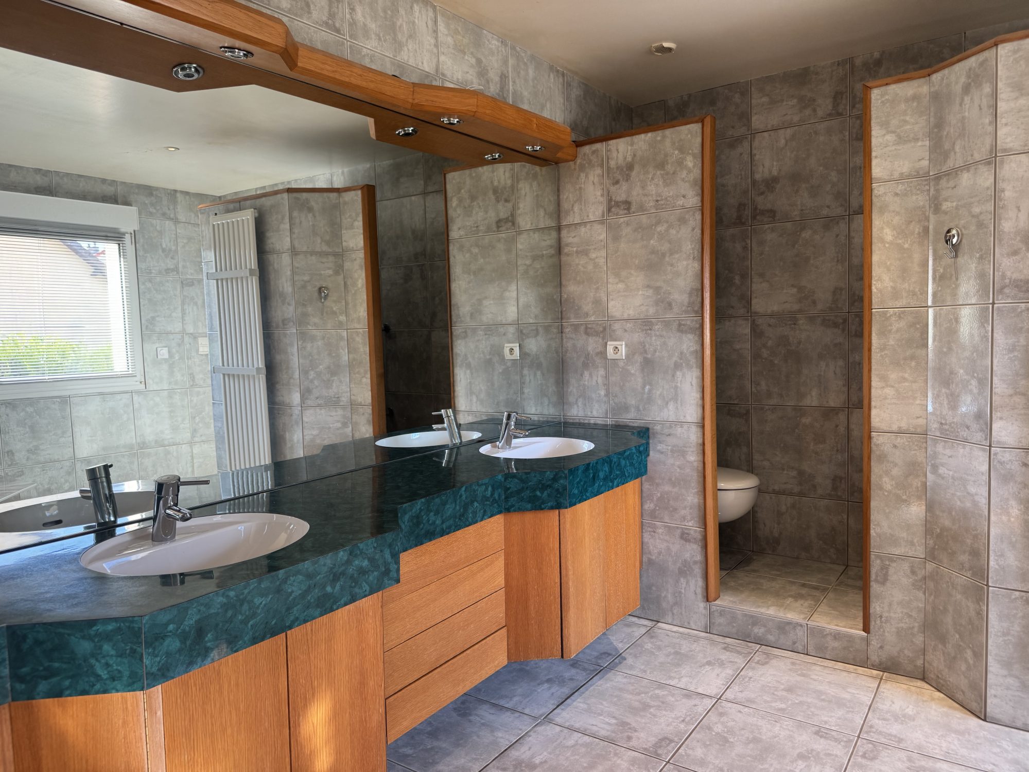 Exclusivité - CHAMPIGNY - 5/10min de Reims Très belle maison récente type 8 d'environ 260m2. Au rez de chaussée : entrée, séjour - salle à manger 75m2 - cuisine équipée, chambre, salle de bains et douches, wc, bureau, dressing, buanderie.A l'étage : vaste salle de jeu 70m2, 3 chambres, salle de bains et douches, wc.Jardin et terrasse sans vis à vis orientés SUD. Garage pour 2 voitures, cour, sous sol partiel - Très belles prestations