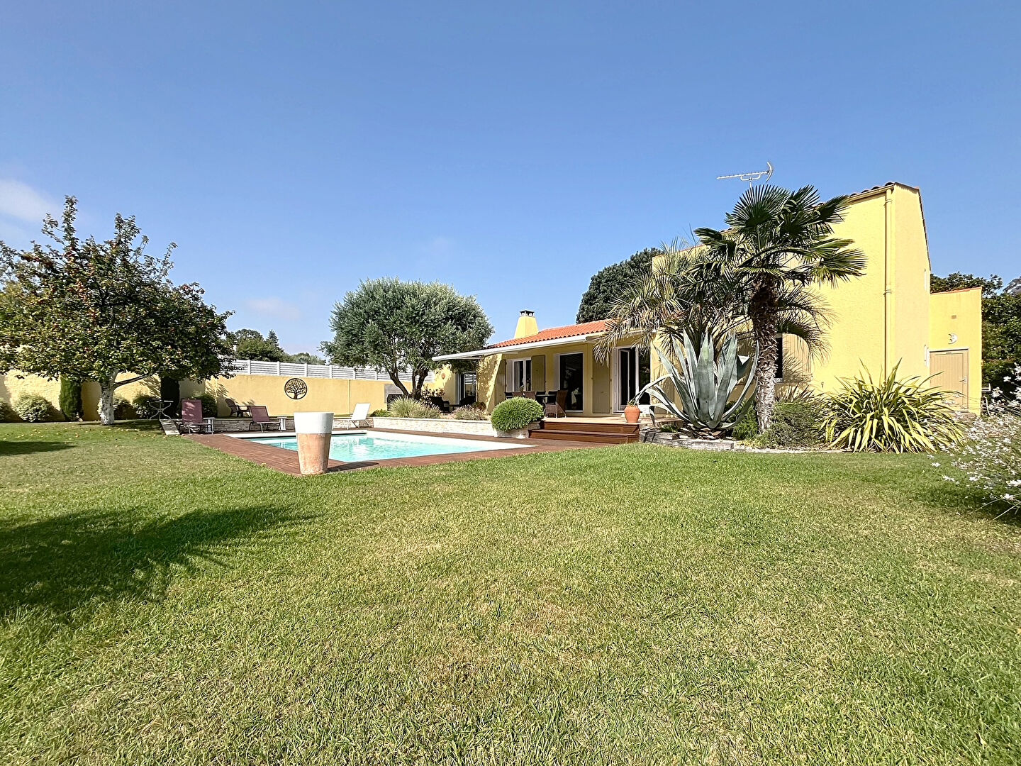 Une terrasse 50 m², piscine, ensemble sur une parcelle de plus de 1000 m² arborés et paysagés avec goût.