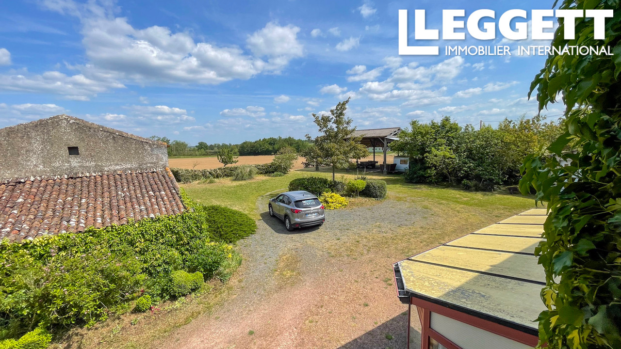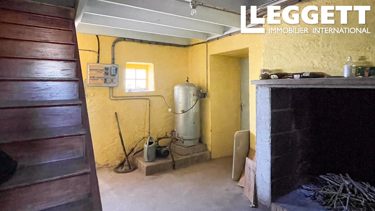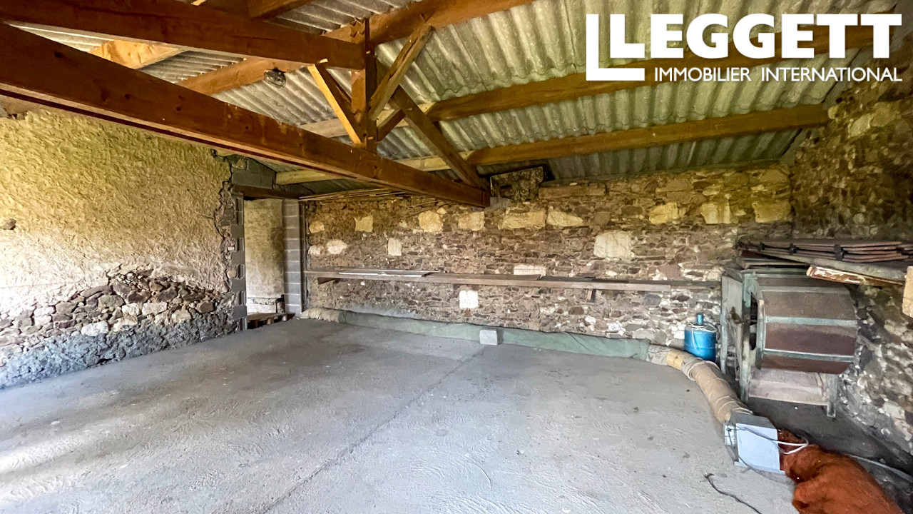 Dépendances en pierres, garage avec portes adaptées , grand hangar, petits toits. Cour devant la maison, verger et petite mare. L'ensemble sur terrain de min 75200 m².