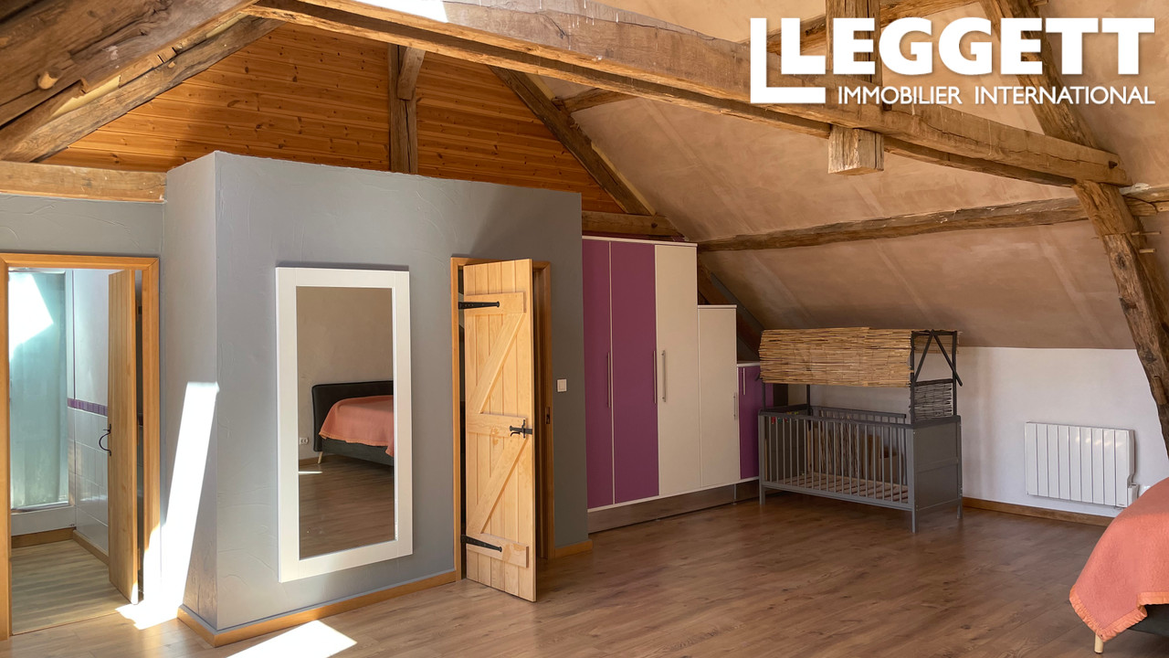 A39214ADU36 - Récemment rénovée avec goût, cette grande grange aménagée est située à la périphérie d'un petit village, dans une ruelle calme avec vue sur la campagne environnante. L'entrée privée donne sur un grand parking à côté de la maison et un jardin arboré de 4 000 m², planté de nombreux arbres fruitiers.
