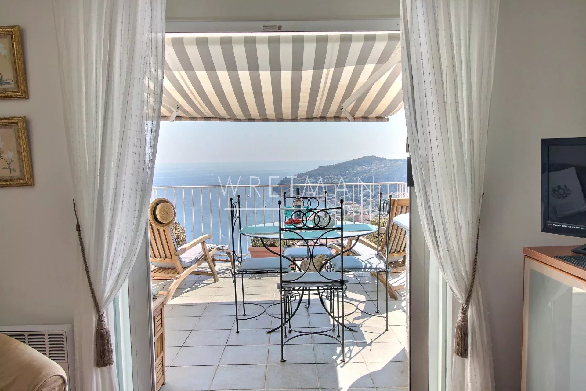 Flottant paisiblement au-dessus de la ville, sur les hauteurs de Villefranche-sur-Mer, ce duplex offre une vue mer panoramique à couper le souffle.