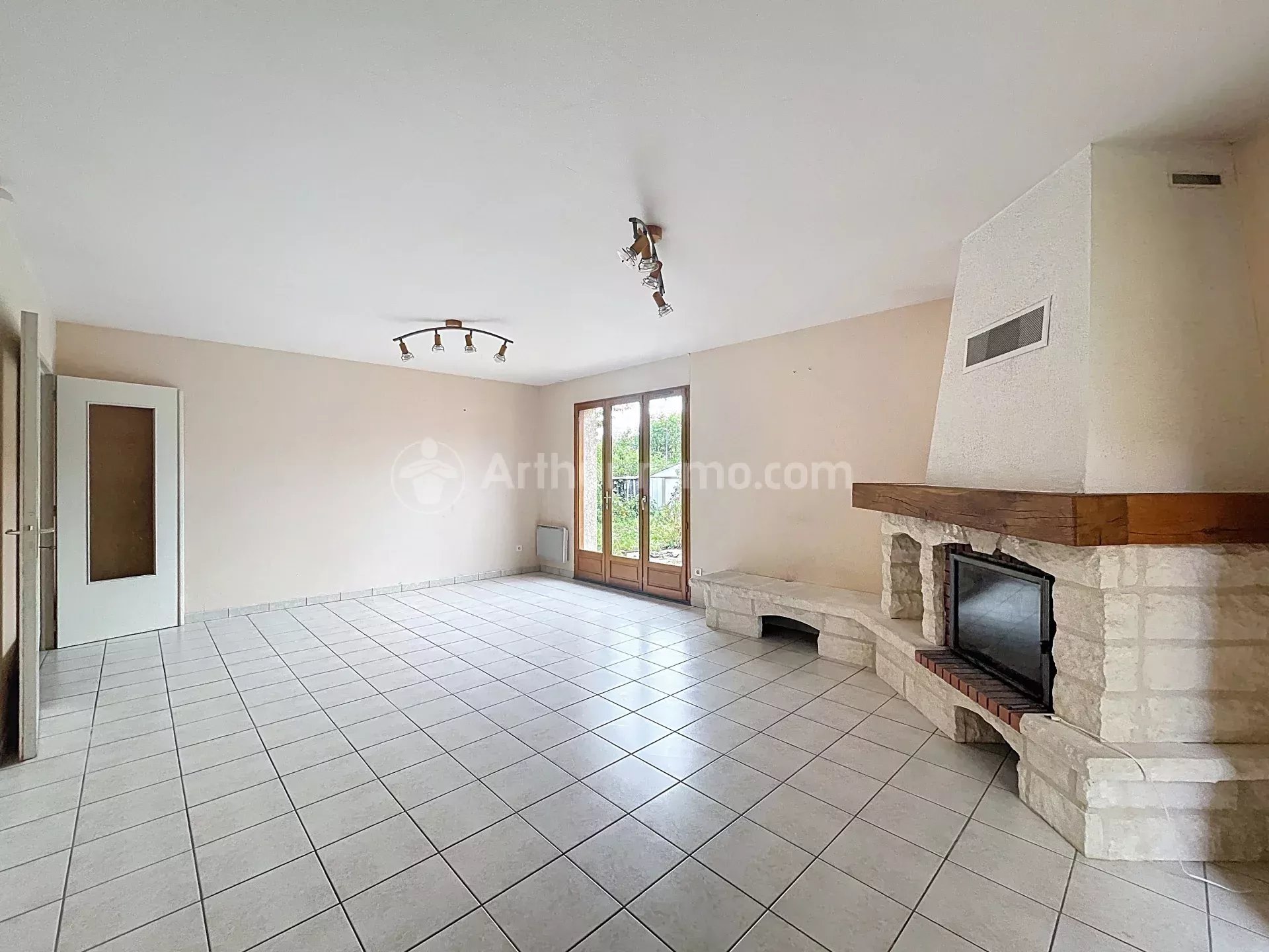 Depuis l'entrée, vous accèderez à un séjour avec cheminée, lequel donne accès à la partie arrière du jardin ainsi qu'à un second salon.