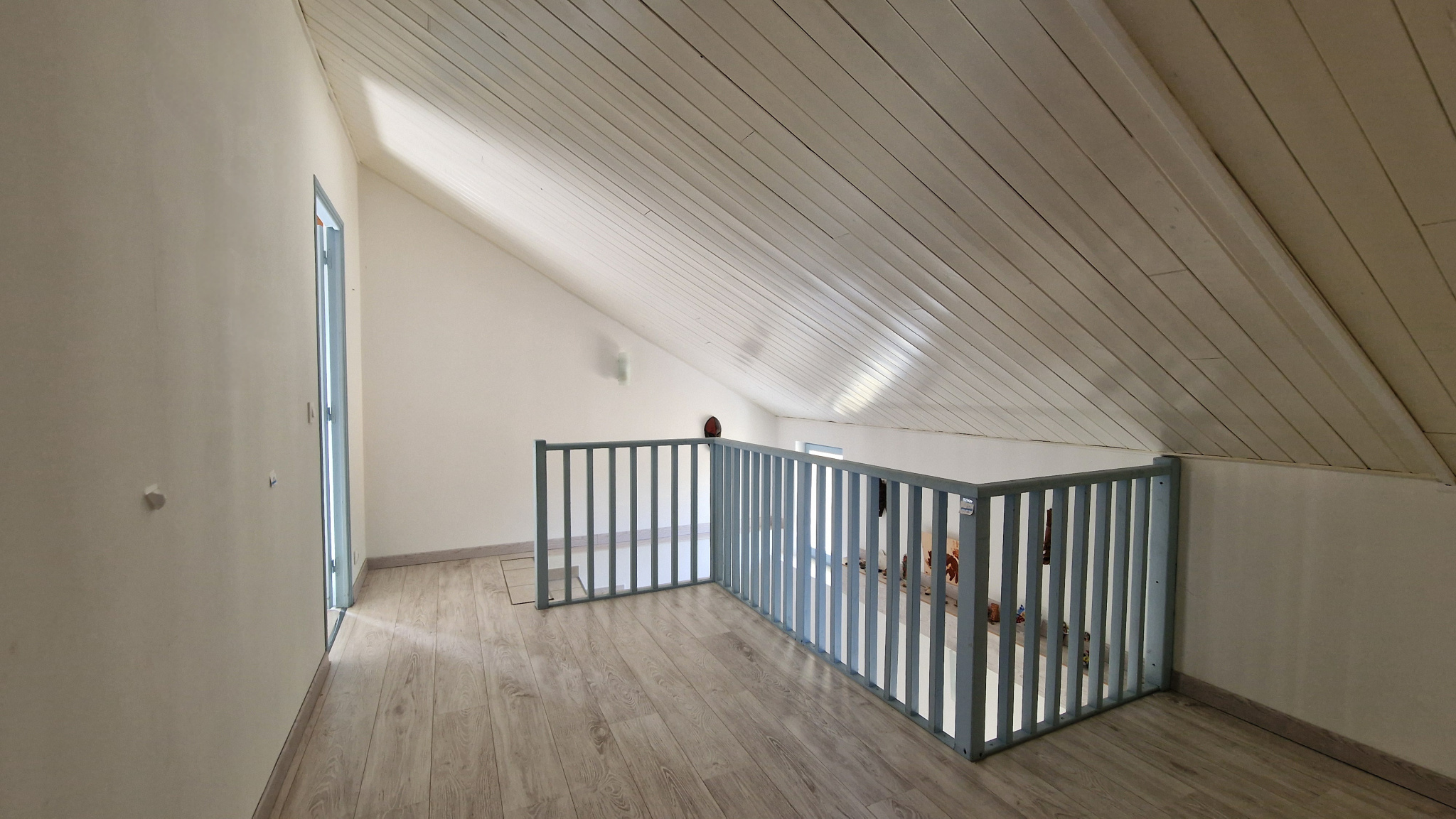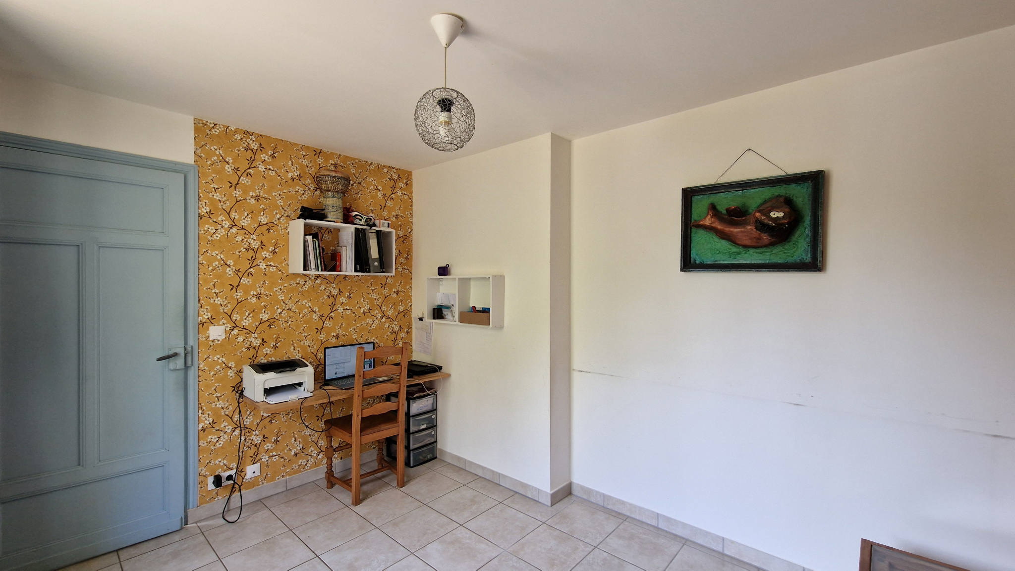 À l'étage, un palier distribue un bureau idéal pour le télétravail ou les loisirs, ainsi que deux chambres.