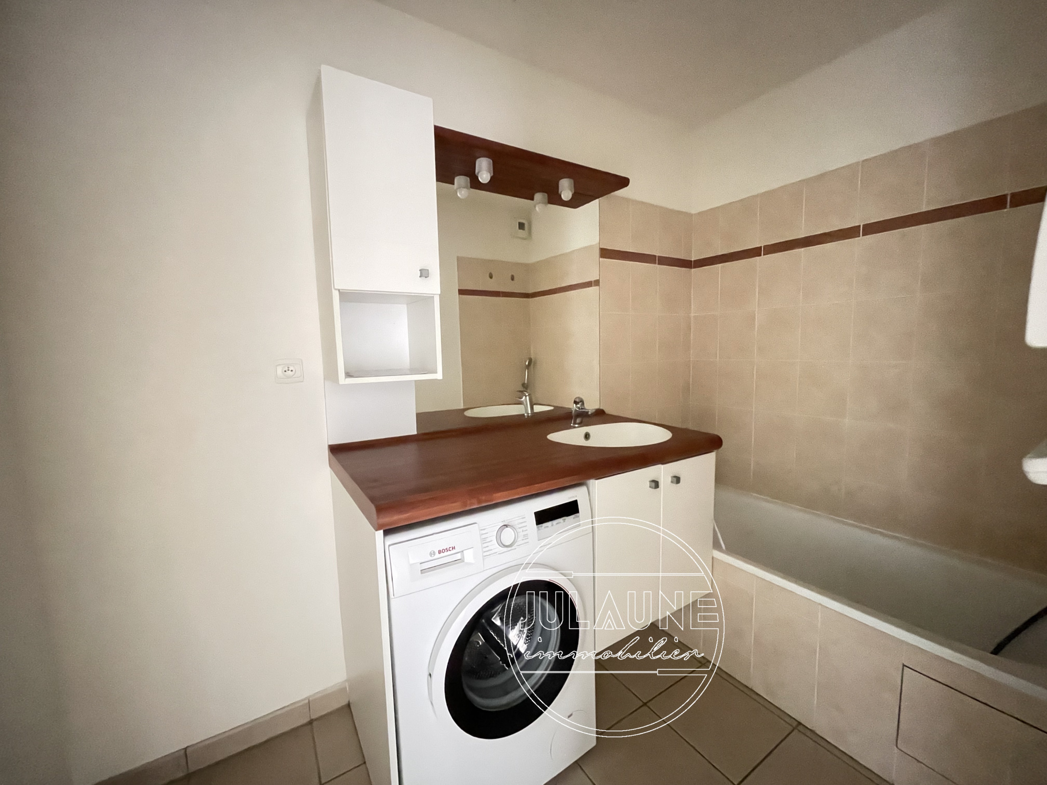 Vous profiterez d'une pièce à vivre lumineuse ouverte sur un balcon, d'une chambre confortable avec placard intégré, d'une salle de bains fonctionnelle (machine à laver) et d'une cuisine aménagée. La résidence offre place de parking privative, gardien, et même une piscine pour vos moments de détente.