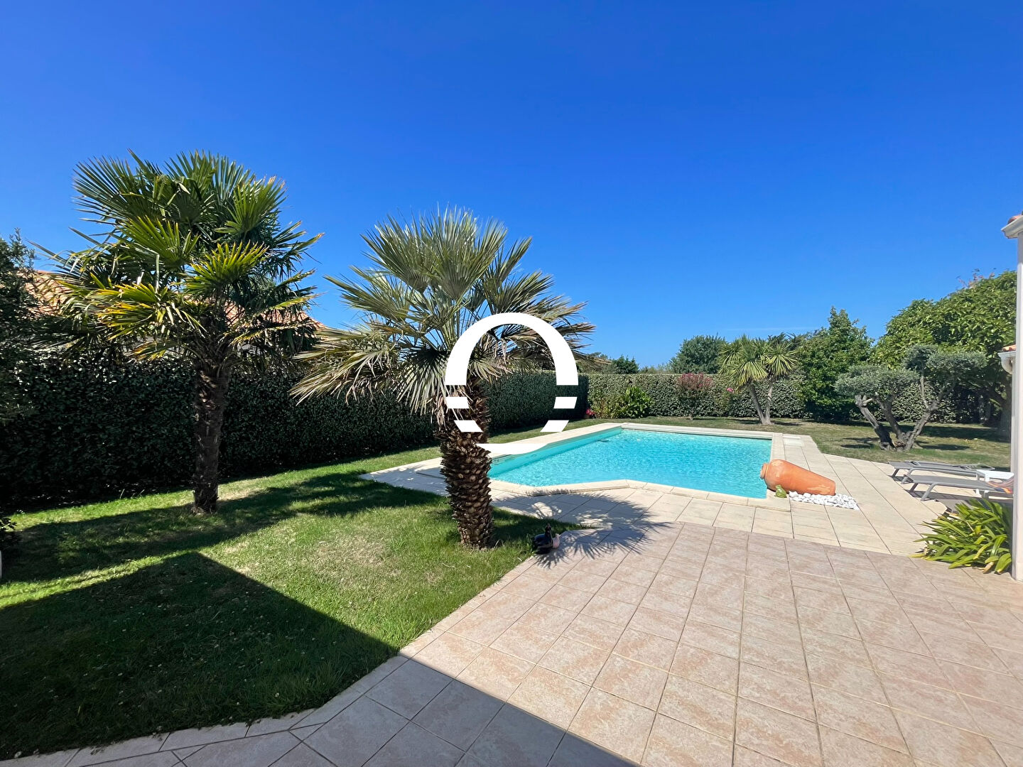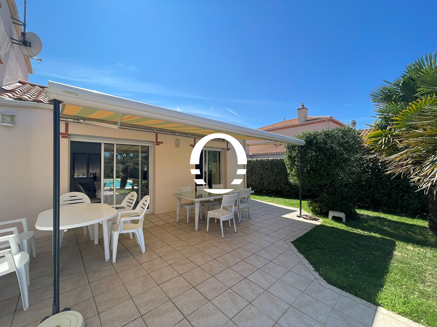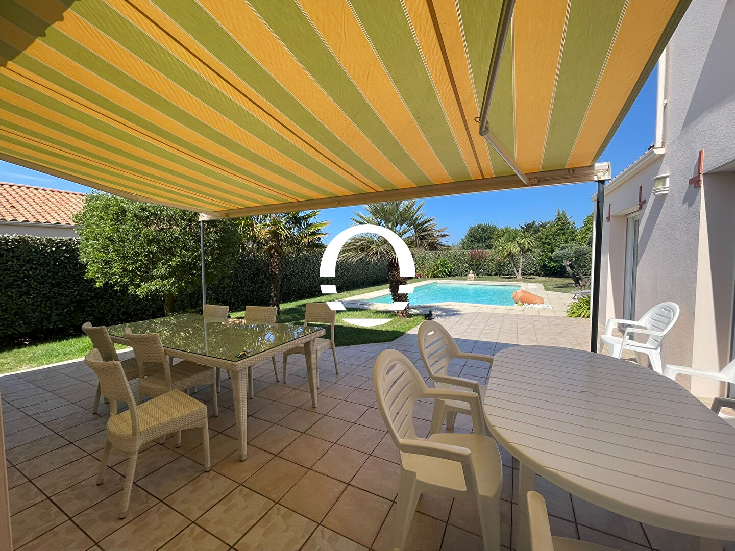 A 10 minutes à pied du bourg de Sainte Marie et de ses plages, spacieuse contemporaine parfaitement entretenue avec piscine chauffée et sécurisée.