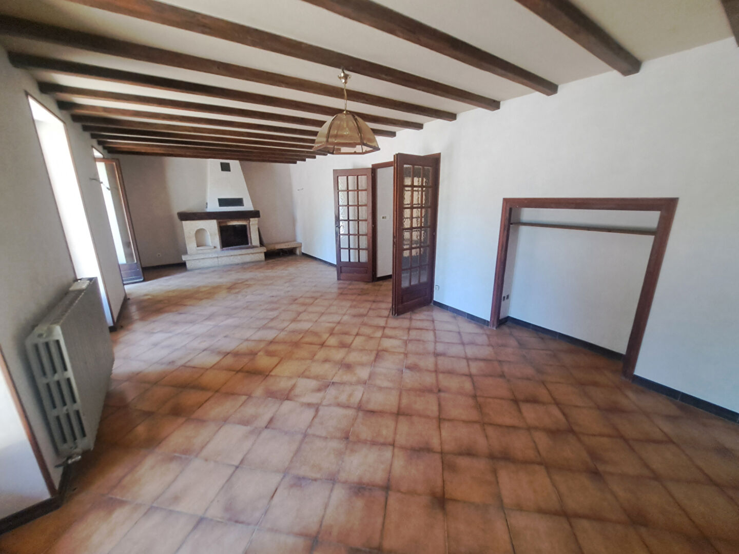 Salon-séjour lumineux avec cheminée