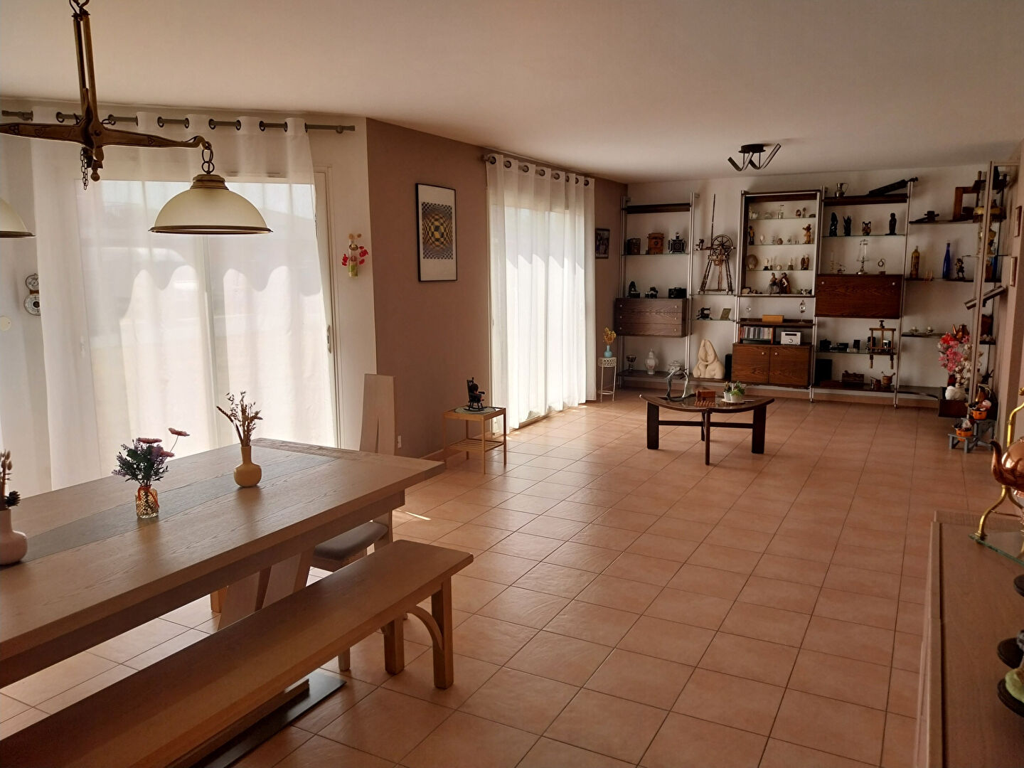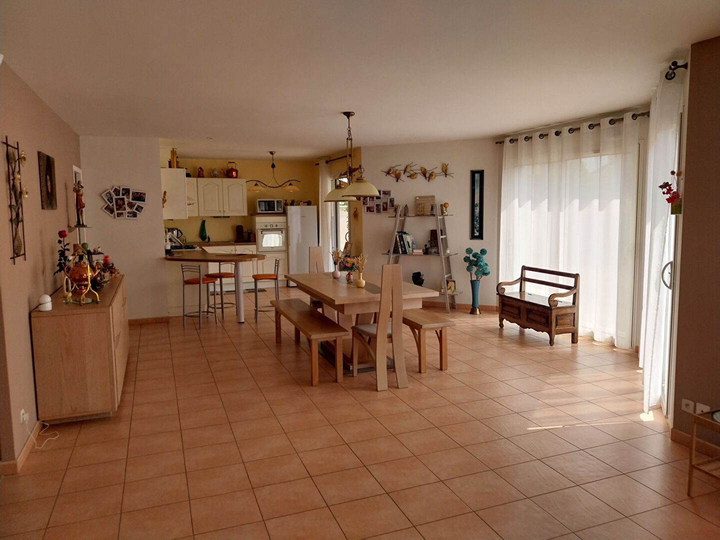 Maison de plain pied de 2011 sans travaux, se composant d'une entrée avec placards, d'un vaste séjour avec cuisine ouverte de 56m² , trois chambres , dont une suite parentale, bureau, deux salles d'eau, deux toilettes et garage