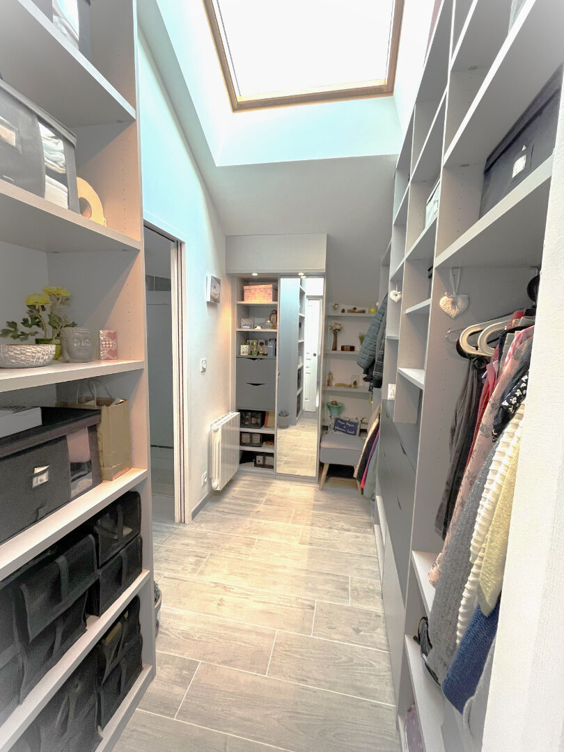 Vous disposez au rez-de-chaussée d'un séjour baigné de lumière et sa cuisine joliment aménagée et équipée, donnant sur une terrasse sud et une terrasse ouest, d'un WC séparé, d'une suite parentale comprenant une grande chambre, un dressing et une salle d'eau.