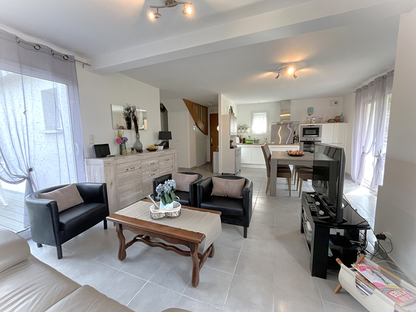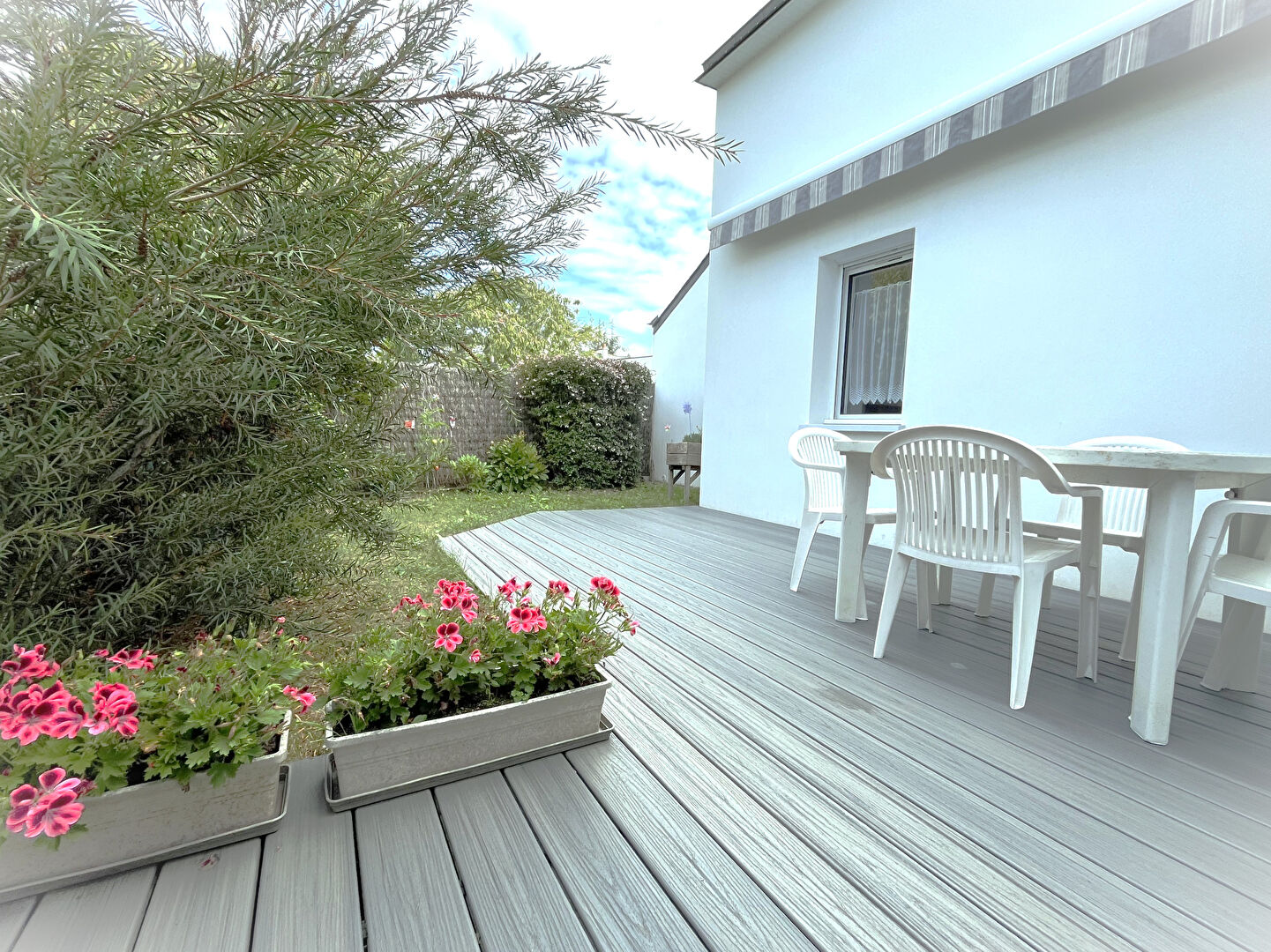 EXCLUSIVITE SQUARE HABITAT CARNAC: Jolie maison contemporaine de 2011 d'une superficie d'environ 110 m² habitable, exposée Sud, idéalement située entre bourg et plage sur un terrain d'environ 300 m² .