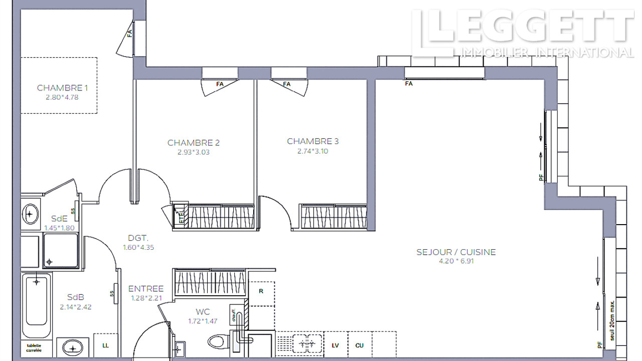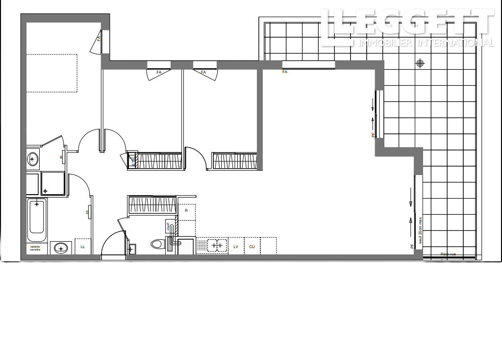 Cet appartement sera très lumineux grâce à de grandes baies vitrées. et s'ouvrira sur une terrasse privative de plus de 30 m², parfaite pour les moments conviviaux par beau temps.