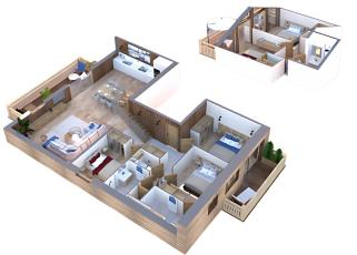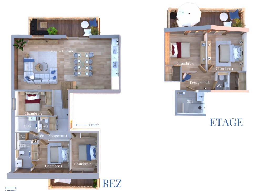 Le Chêne Cuivré est un appartement duplex de 154 m2, possèdant 3 terrasses, 5 chambres et un salon avec cuisine américaine d'une surface de 57 m2 ! Vous vous sentirez comme dans un chalet !