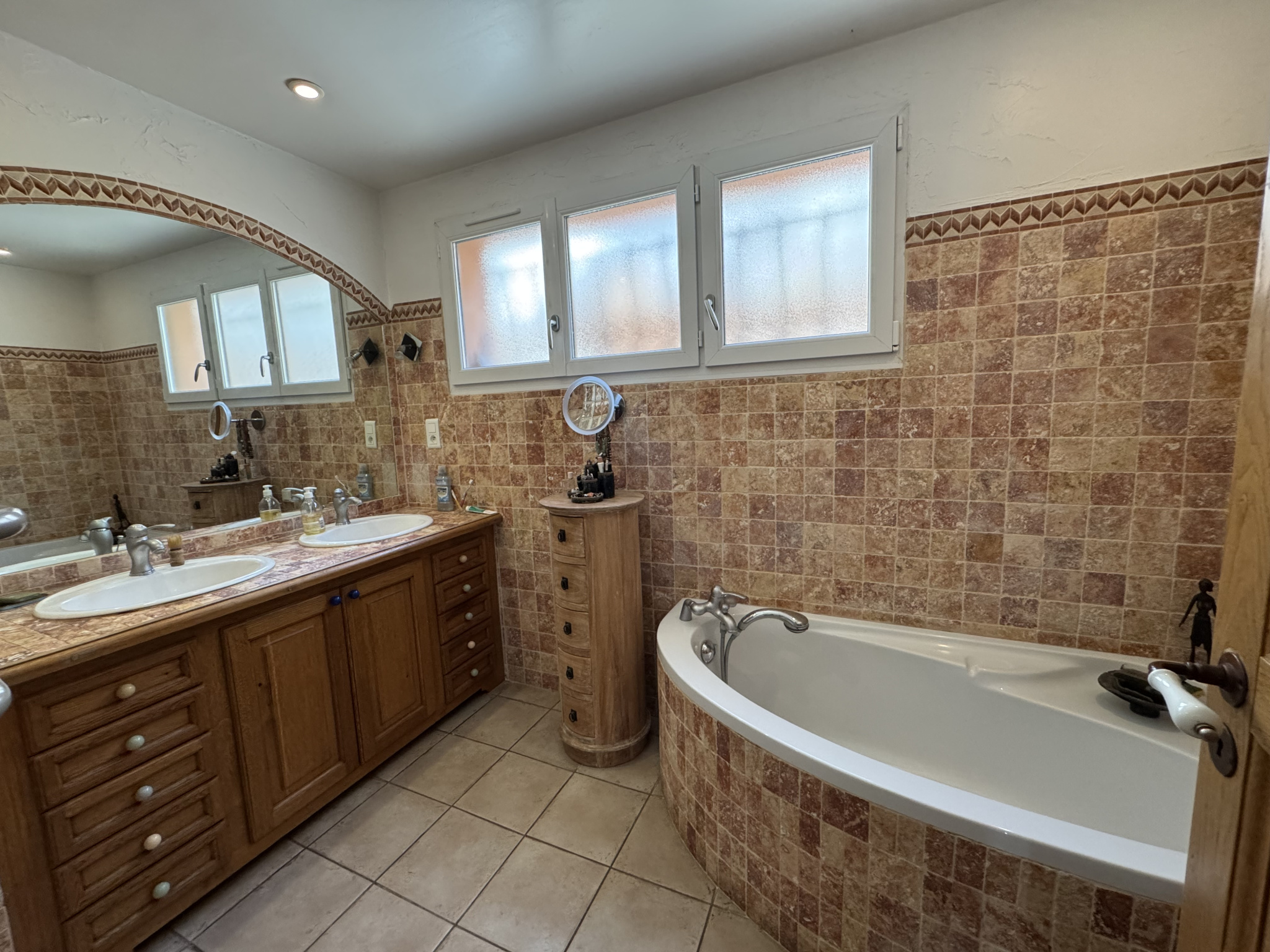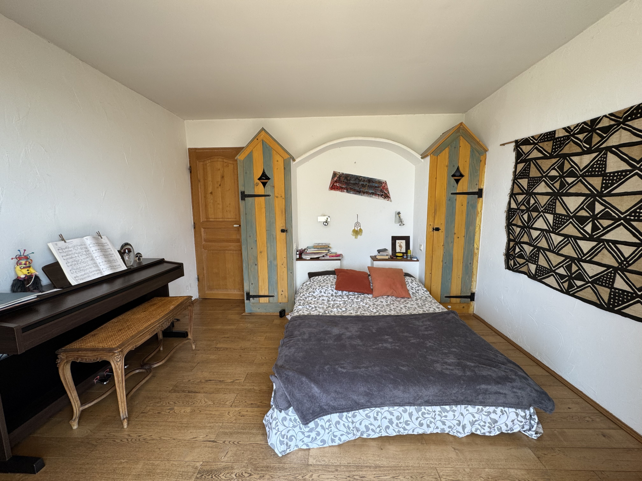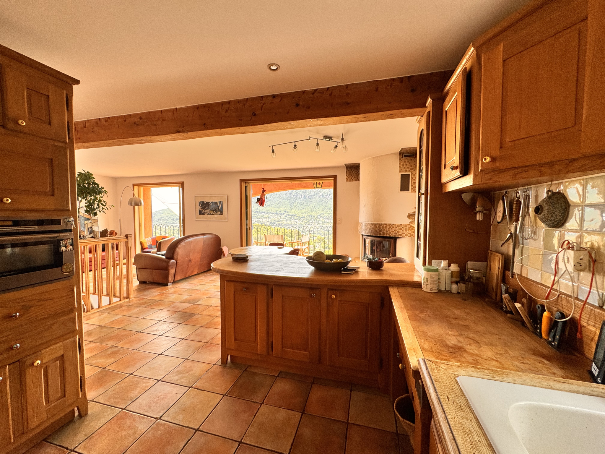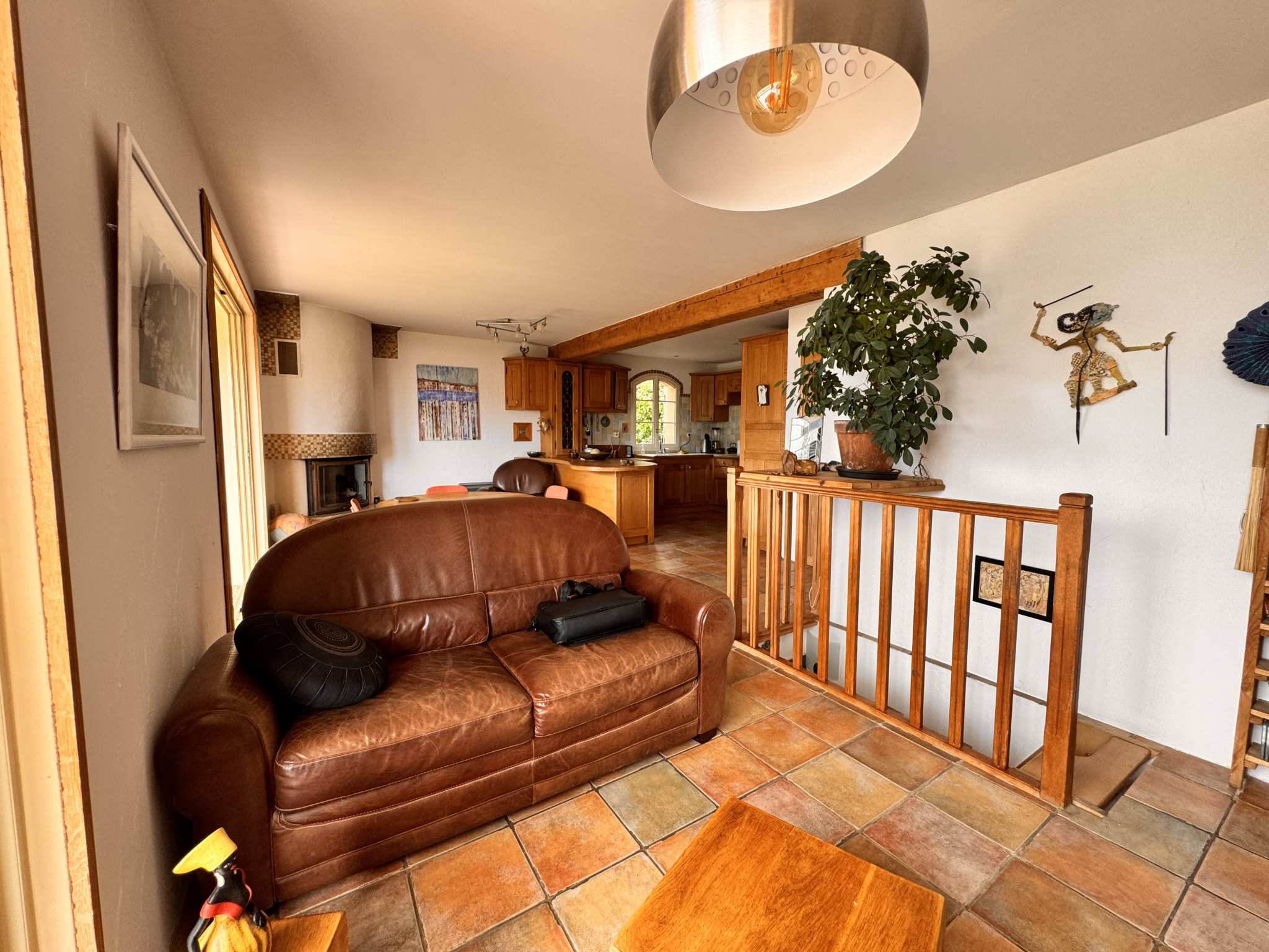 La maison propose quatre chambres et un bel espace de vie familial. Le séjour et la cuisine de 40 m2, lumineux grâce aux baies vitrées à galandage, s'ouvrent sur une grande terrasse qui prolonge naturellement l'espace intérieur et permet de profiter pleinement de la vue.