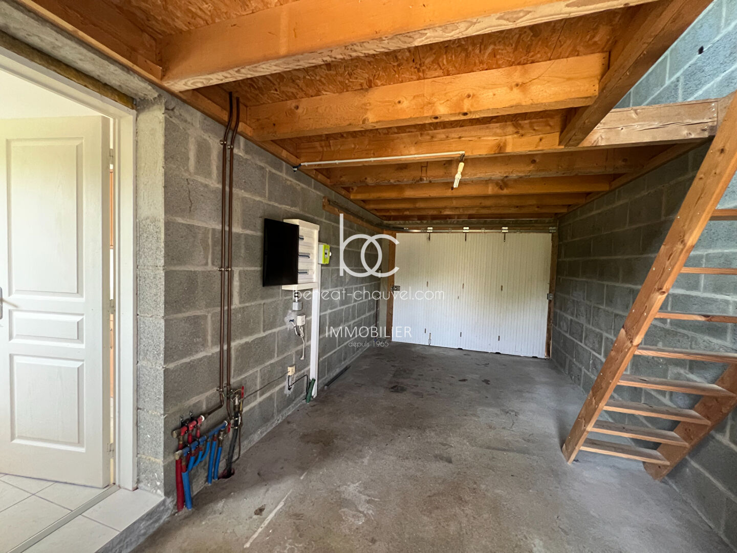 Un garage attenant avec grenier et un stationnement extérieur complètent ce bien.