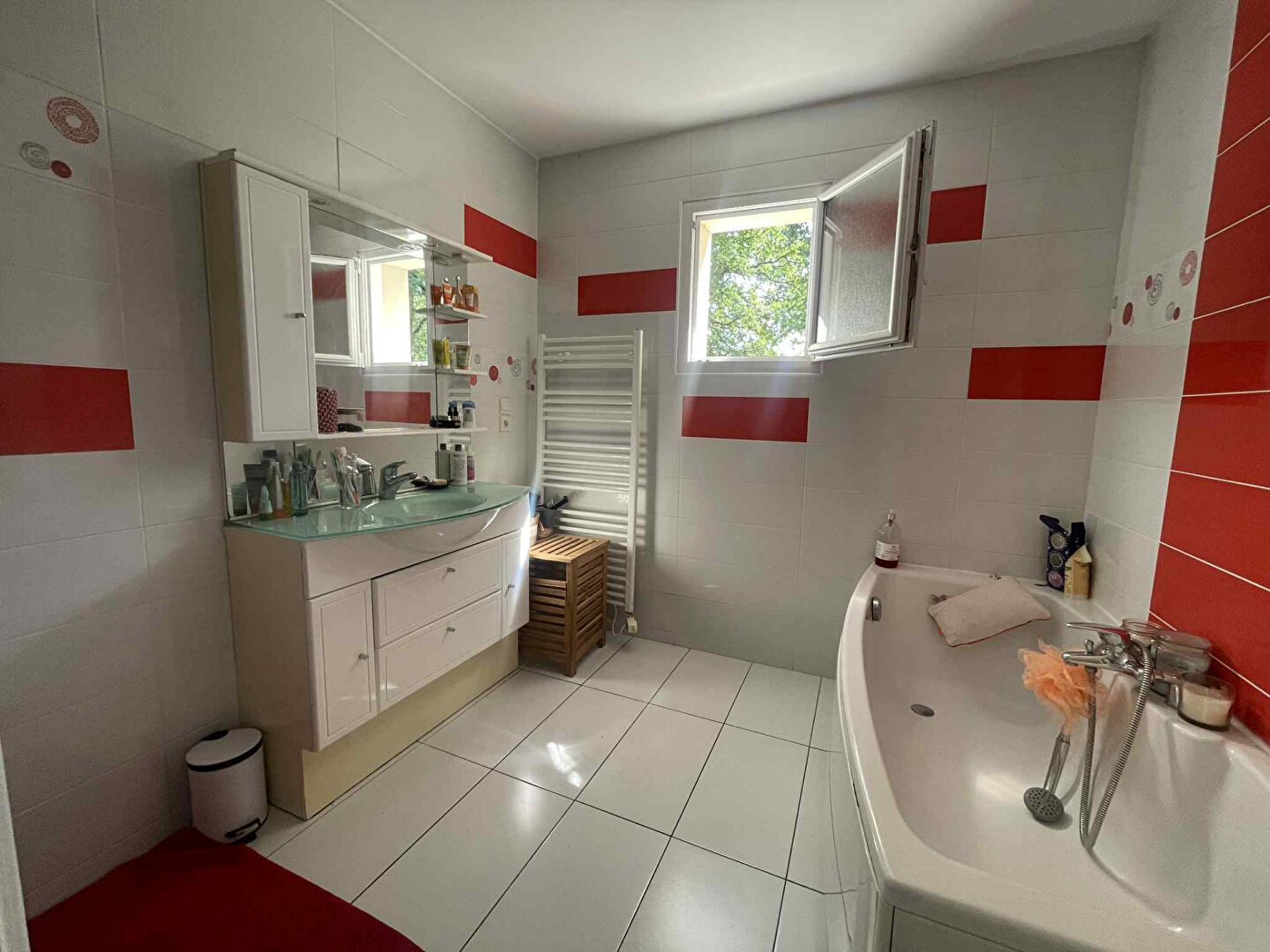 Elle se compose d'une belle entrée avec rangements, menant à un vaste salon-séjour lumineux d'environ 40 m², ouvert sur une cuisine moderne, aménagée et équipée. Une buanderie et un bureau avec placard viennent compléter les espaces de vie.